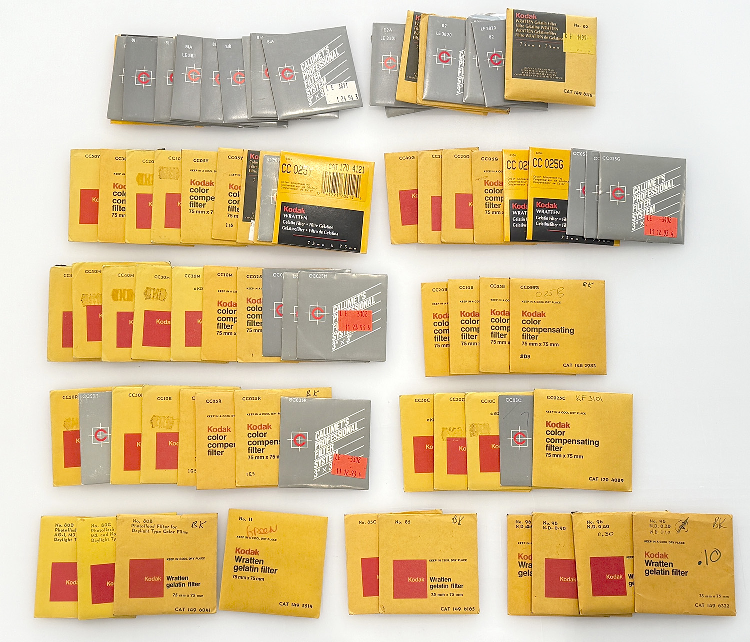 I have about 75 3x3"written color correction gel filters. There are cyan, magenta, yellow, red, blue, green, ND, 81 series, 82 series. Some never opened. Just look at the photo.