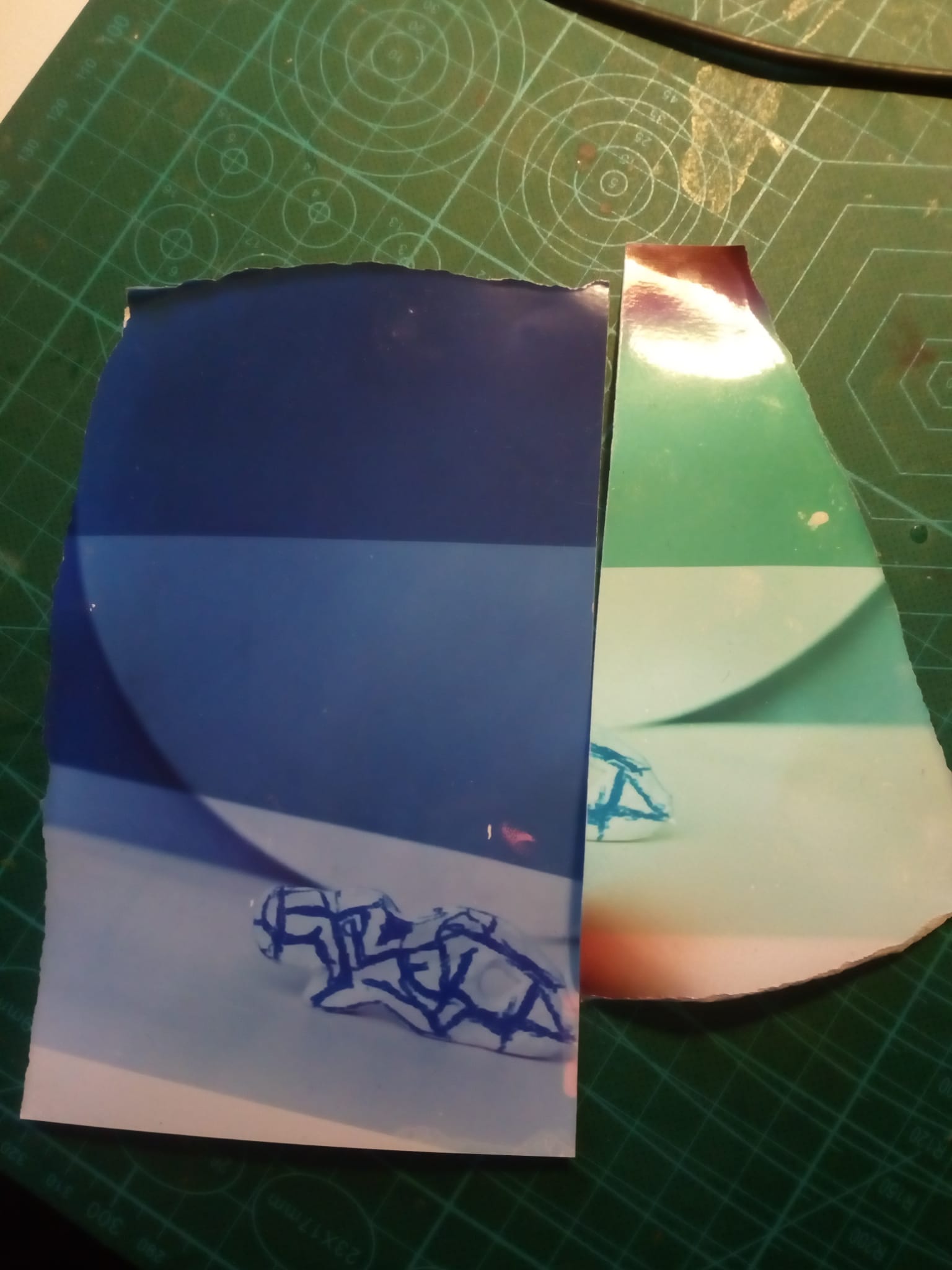 Just out of interest what negatives are these test strips from? Others seem to be able to see images from a negative projection onto a piece of RA4 but all I can see is a mid to dark blue section with a light blue section under it and on the other side green sections both of which seem similar in colour with some beige sections and a thin darker green streak