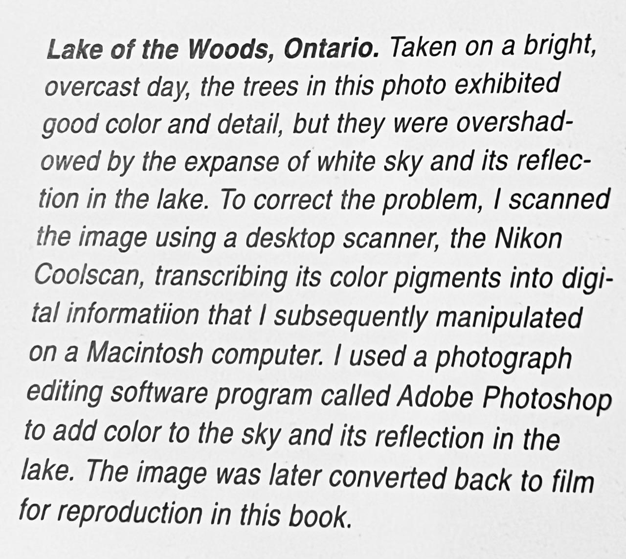 Note also the reference to a Macintosh computer. That name was retired in 1999 and replaced with Mac. That also was around the time Nikon introduced the Coolscan, which was referenced in the quote. So the quote would appear to be from about 20 years ago. Maybe Nikon 2 can tell us where he found the quote and the name of the photographer.