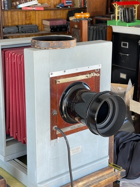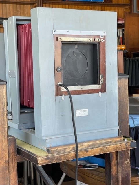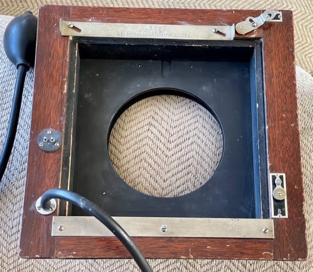 First of all, the pics with the camera and the huge Bausch & Lomb lens are just eye candy to inspire you. Those aren't included. The offer is of the Ilexpo Accessory shutter that fits in the 9X9 lens board area of the big Century Studio cameras. It stays in the camera and takes easy to make 6 3/4" square lens boards. The shutter opening is 4" so plenty for the 16" Pinkham Smith or 18" Verito. This is freshly serviced and working perfectly. All functions work. No 6 3/4" lens board included. $105 + $15 for the post man.