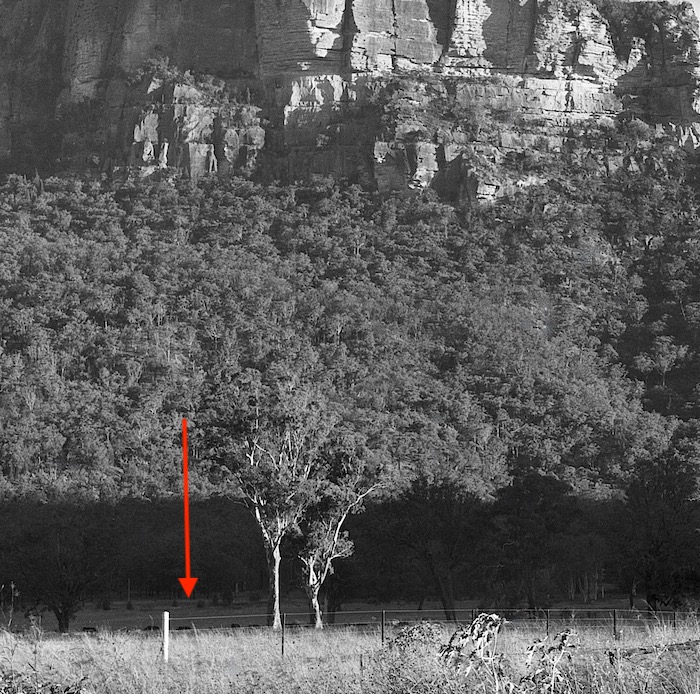 Speaking of detail in shadows Alex, I found the dirt road I drove along to get to the spot where I took the photo from. When this image is expanded even further the road can be seen as a narrow strip of grey. Only pointing it out because that shadow detail was of interest to me as well. The red arrow pin points the road. Just as a matter of interest, the escarpment are not cloae to the road, they are a very long way from it, and even a greater distance from the spot where I took the photo.