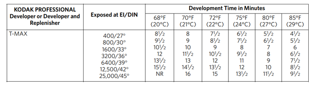 And from Kodak’s Tri-X data sheet: