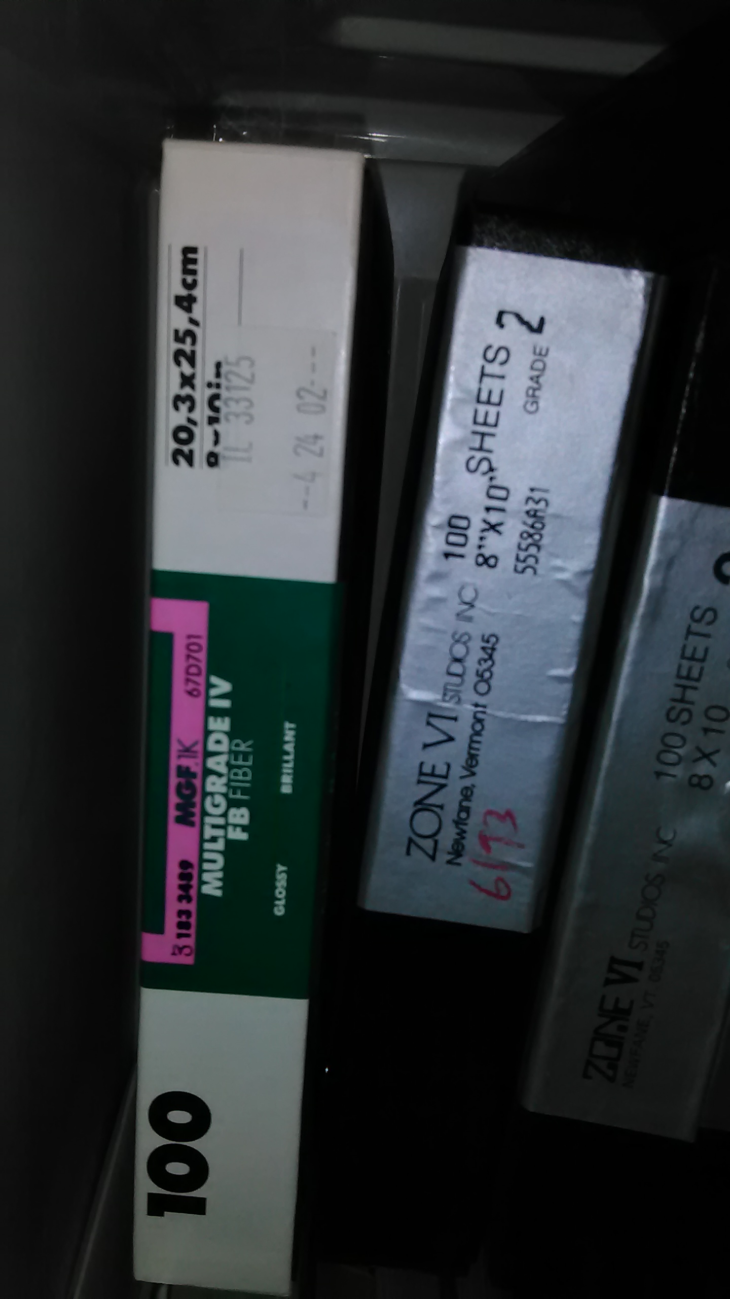 Like Leigh, I, too, burned up many a box of Zone VI's B&W paper, but have no idea of worth (if anything) today. I can tell you that Fred sold this paper for $28.00 per 100-sheet box when first introduced. Of course, the price increased somewhat over the years.