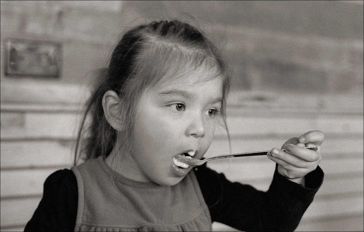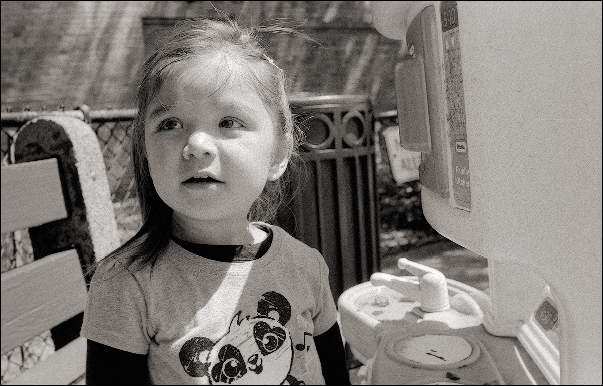 My daughter Mimi at the new Farm Burger in Berkeley, Nikon N80, 50/1.8 AF lens, Neopan 400 in HC-110: