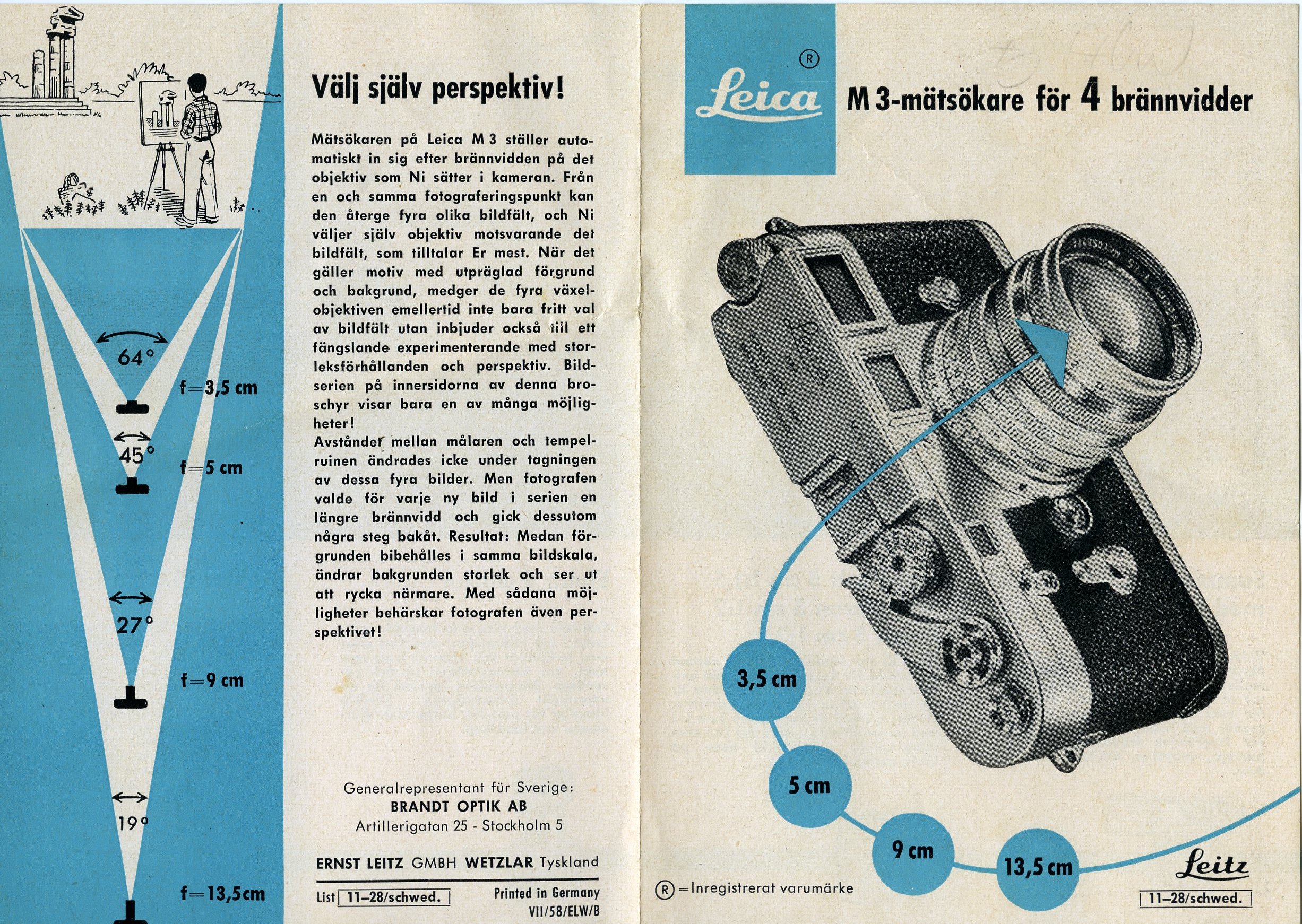 Well done display showing the relative view angles for the 4 most popular lenses. The 35mm, of course, needed the goggles to change the magnification in the M3's finder because the largest frame was for 50mm. For many years, I used the generation 1 35mm f/2.0 Summicron with goggles, the famous 8-element version. Some people still like that 8-element version more than more recent ones. It was a spectacular performer, a jewel of craftsmanship.