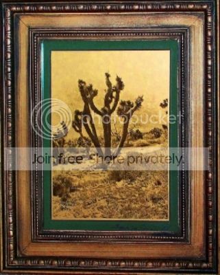 Have been trying several techniques for getting the"gold" to look right(to me).Also finding some images look better than others for the orotone effect and learning which densities to shoot for. In my opinion images shot on paper negatives appear most like the Curtis orotone images(probably because of the blue sensitivity,like older glass plates).I stripped the Joshua tree print I put up before and applied my latest "gold" backing,the wife liked it enough to frame it.