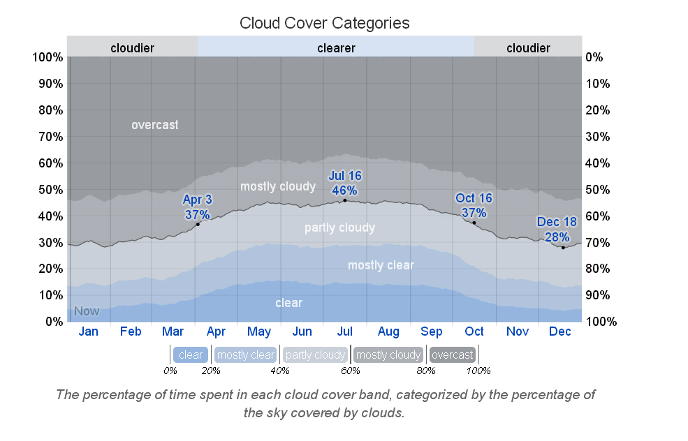 0vercast half of the days, even when clear you have what in my location is dull illumination, you have a soft box in the sky !