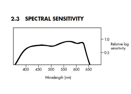 That spectral sensitivity for Foma 400 IS very interesting. Most films fall off toward the red, no? It seems to be most sensitive to red before falling off a cliff. I never noticed this but then one wouldn't unless doing careful tests or at least shots of things where one remembered the colors, and maybe with comparisons at that. I've used it for street shooting in my Yashicamat where, by the time I process it, I've no memory of what color anything was. :wink: