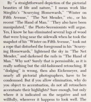 Hartmann in "A Plea for Straight Photography" set out examples as definition of the first instance/meaning/intent.