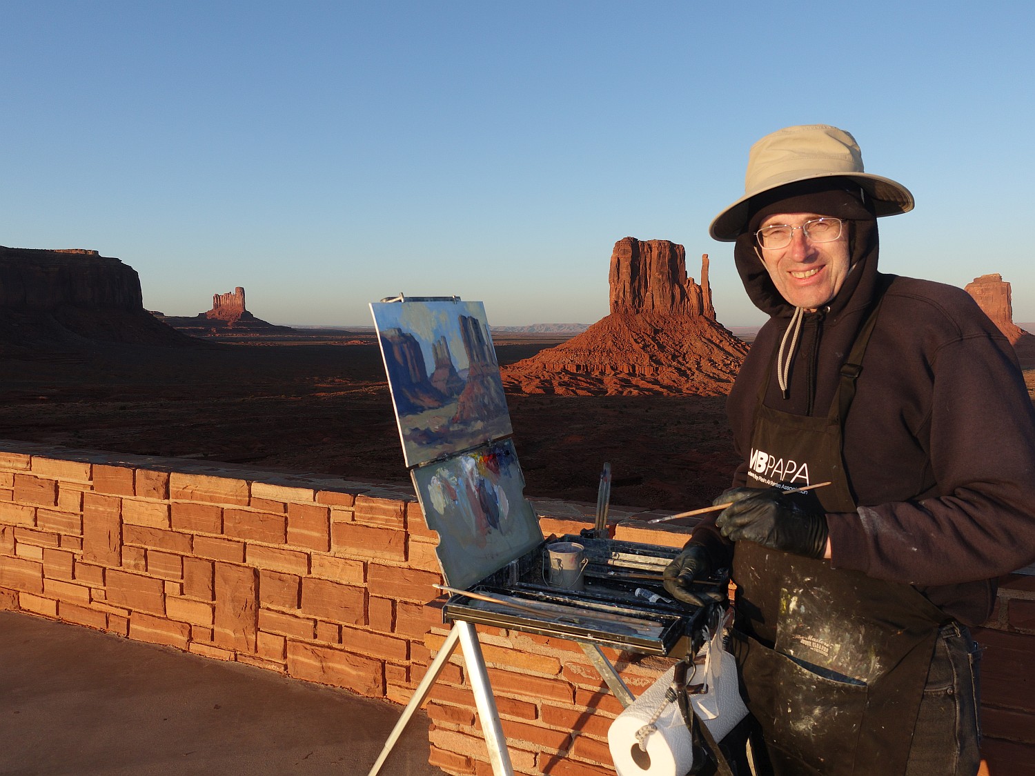 I still think people trust photos more than paintings for accuracy of the scene. Here's a picture I shot in Monument Valley. Notice the distance between the monuments in the background and on the painting. Also the skies. Which do you trust to more accurately reflect the actual view? My photo or his painting? By the way, the artist liked my digital capture so much, he asked for it so he could use on his business cards.