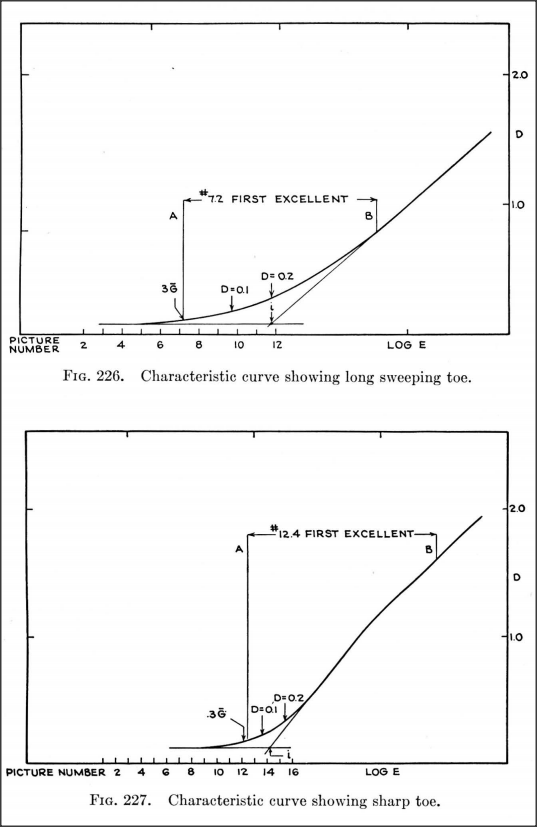 Stephen, the curve with the sharper toe is much slower. This is why we tried to maximize the toe and also get the highest toe speed. The actual speed of an emulsion is the inflection point of the curve over fog. Anything else is meaningless due to variations in toe and contrast. One works with this value to optimize the curve that "follows".