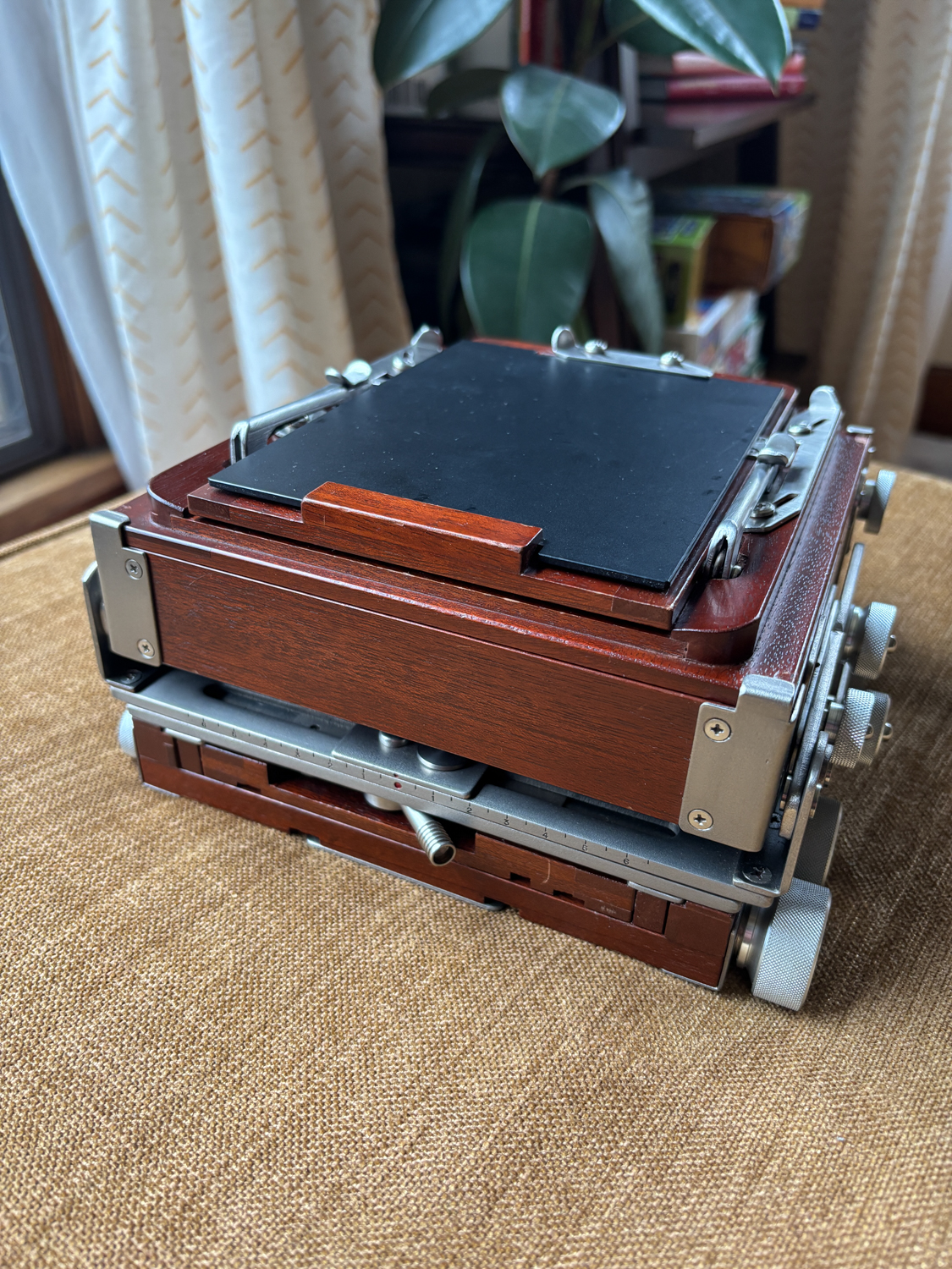 ...who was interested in selling their SV45. So I figured I'd try it to see what a folding camera is like.All I can say is that the craftmanship on these cameras is extraordinary. BUT, they are not for me! There is something about wooden cameras that just doesn't feel right. I really value precision. I guess I'm more of a metal than wood camera person. I don't mind carrying a moderately heavy metal brick up a mountain.