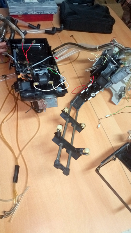 A cleaver decision would have been throwing it miles away... so next step was a car washing station job, I nedded 3 hot washing rounds and several "cillit bang" bottles to remove the mice odor, last washing was made on totally disassembled parts. Before starting with the Karcher the new electronics development had been decided and I did play no attention in the scrapping of the boards. I saw too many cables there...