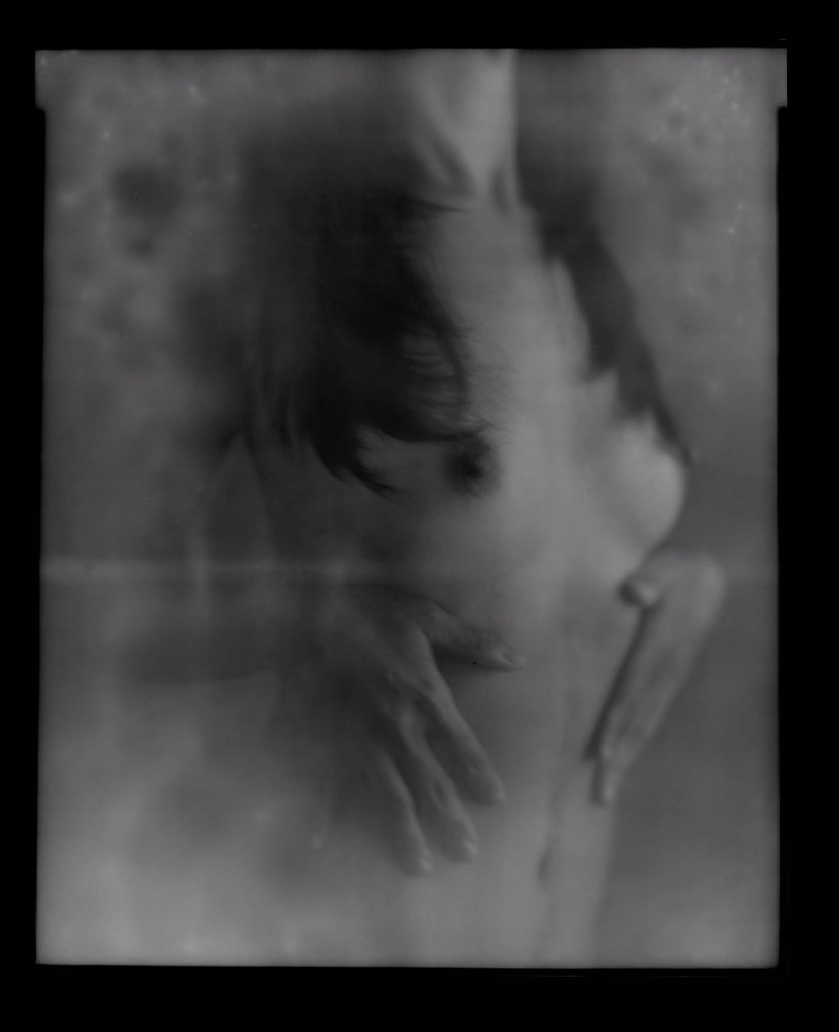 This one looks like at least in part a processing problem, with the edges of the sheet having been exposed to the fixer for only a small part of the time: