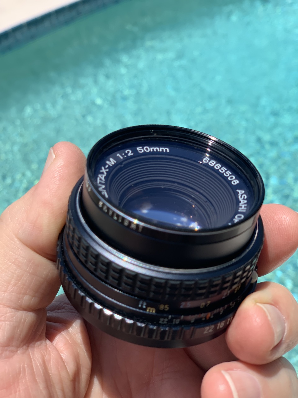 SMC Pentax-M 50mm F2. Excellent condition. Sold with an Asahi Pentax 49mm Skylight filter. Orignal front cap, but no rear cap. A very fine performer. Price: $15 plus shipping