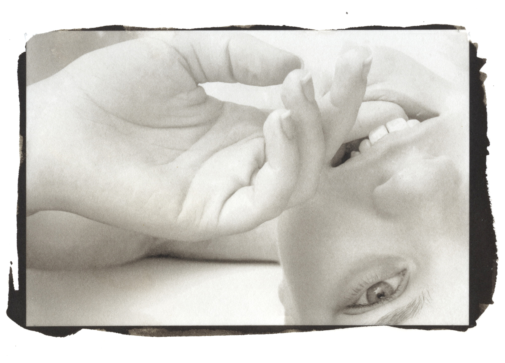 EDTA: I can speak only to disodium EDTA -- never tried the tetra version. But I have seen bleaching with disodium EDTA, especially with high-key images. I'm attaching a scan of a workprint (I gave away the final print, and threw away the bleached version) of the image that made me give up EDTA -- when I tried to clear it with EDTA, half of her face vanished, and did not come back up in the toner. I do not recall which paper, whether HPR or Revere -- it would have been one or the other.