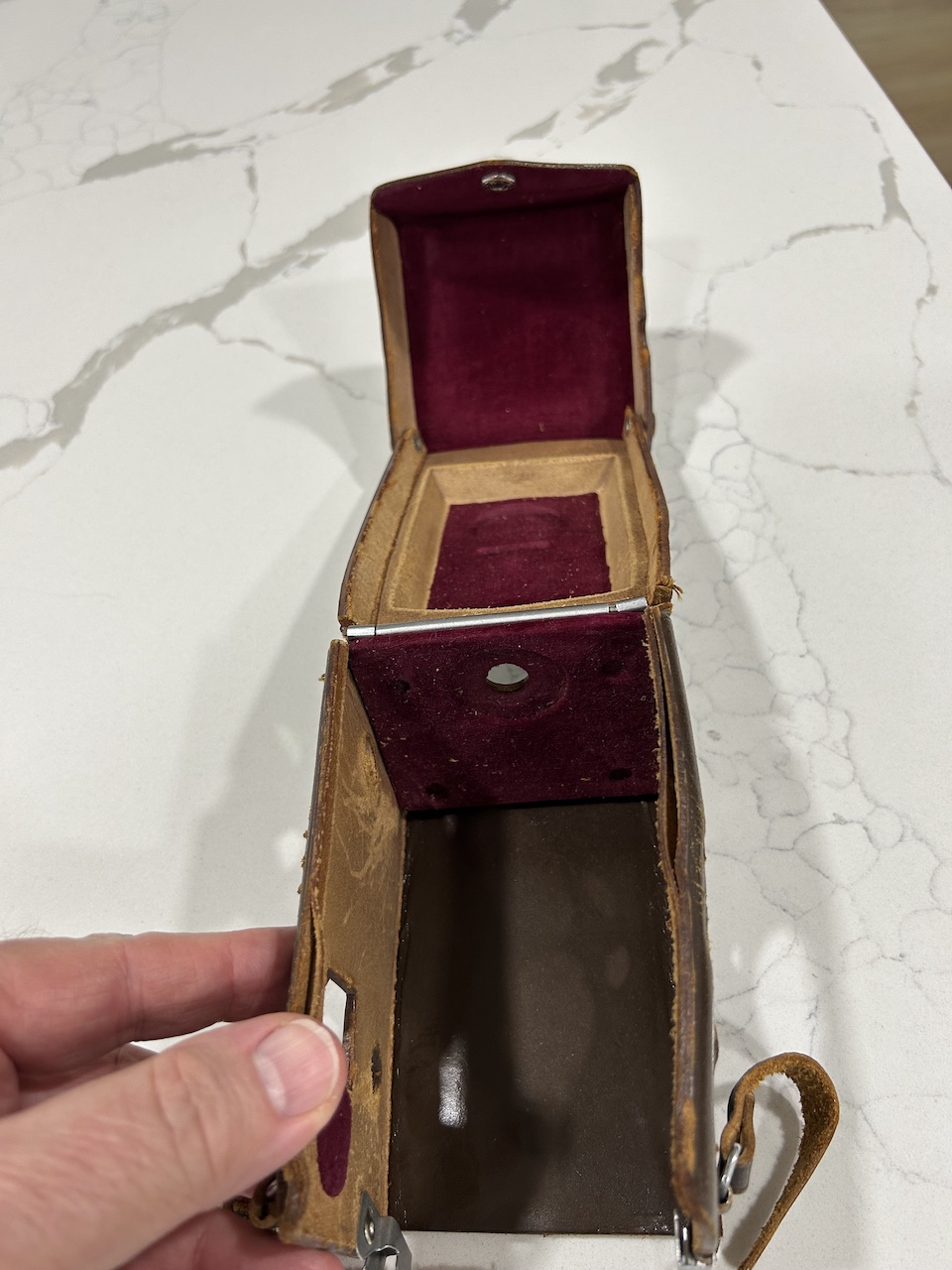 This is an original case for the legendary Kalloflex TLR. The case is well-worn, but intact and fully functional. A uncommon item.