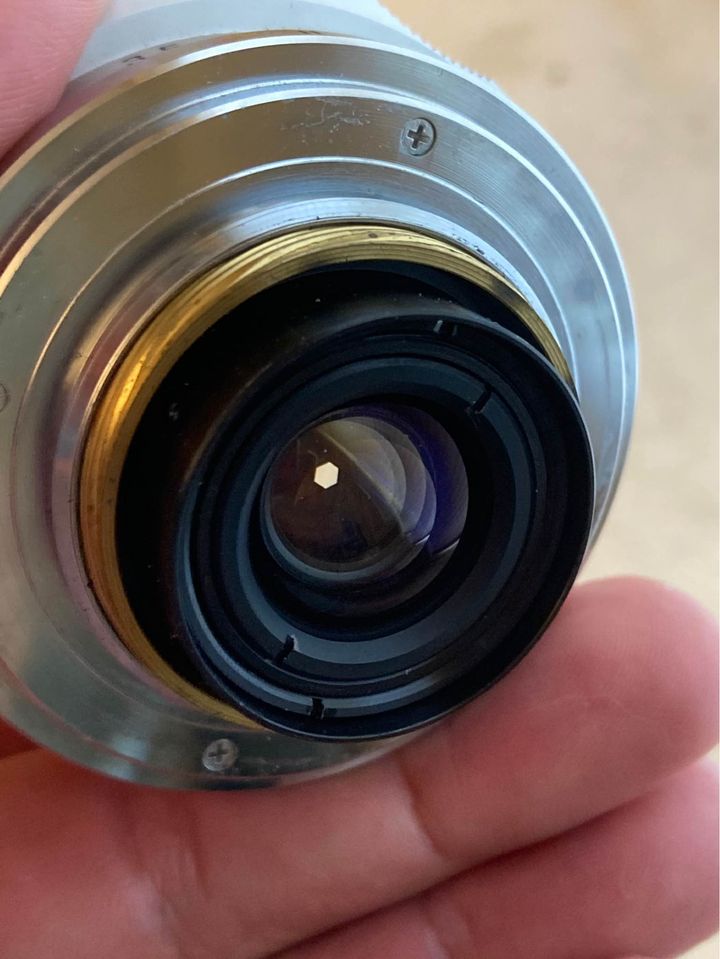 Lens is excellent condition - solid 9. Glass is clean and clear with no haze, no fungus, no cleaning marks - GREAT glass. Aperture and focus works great. Nice lens at a reasonable price and good performance ! Finder is also in great condition although there is the faintest trace of haze but only visible with super strong light hitting it at an angle.