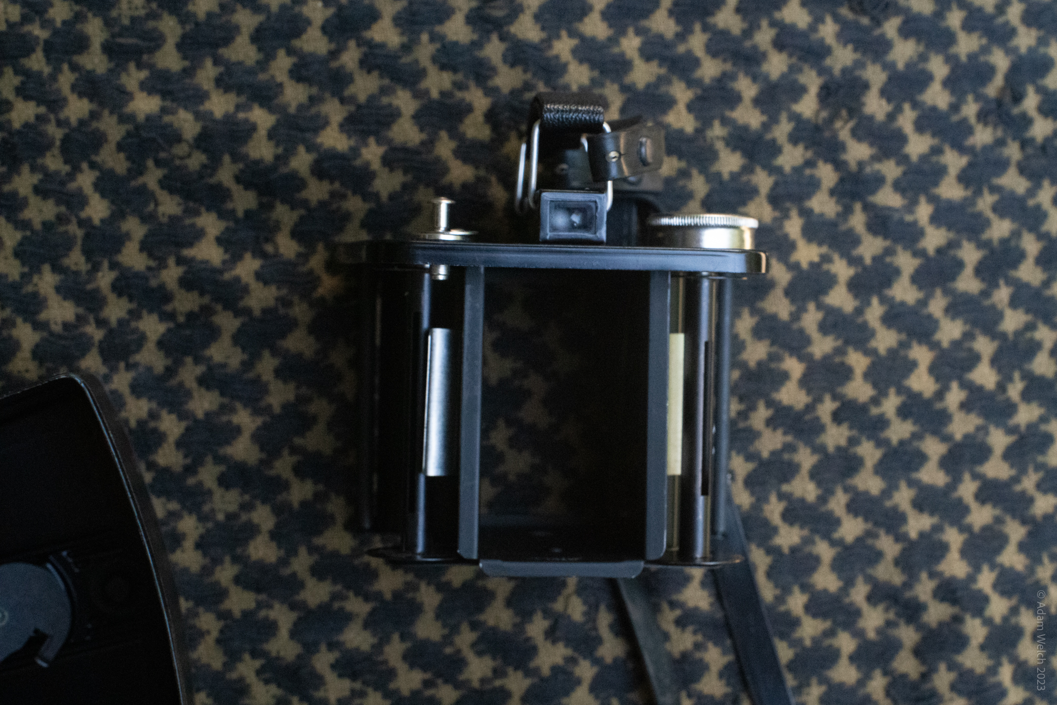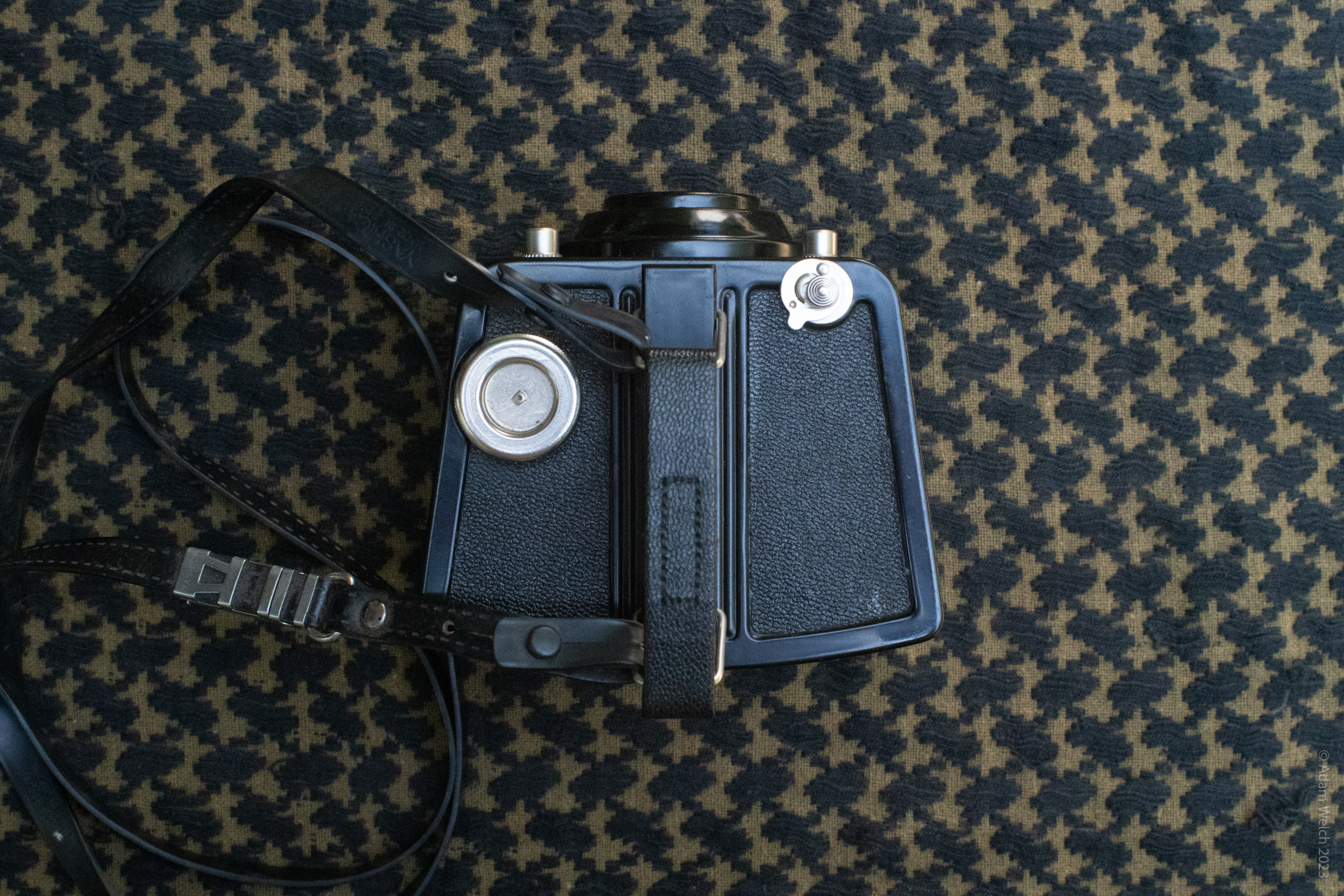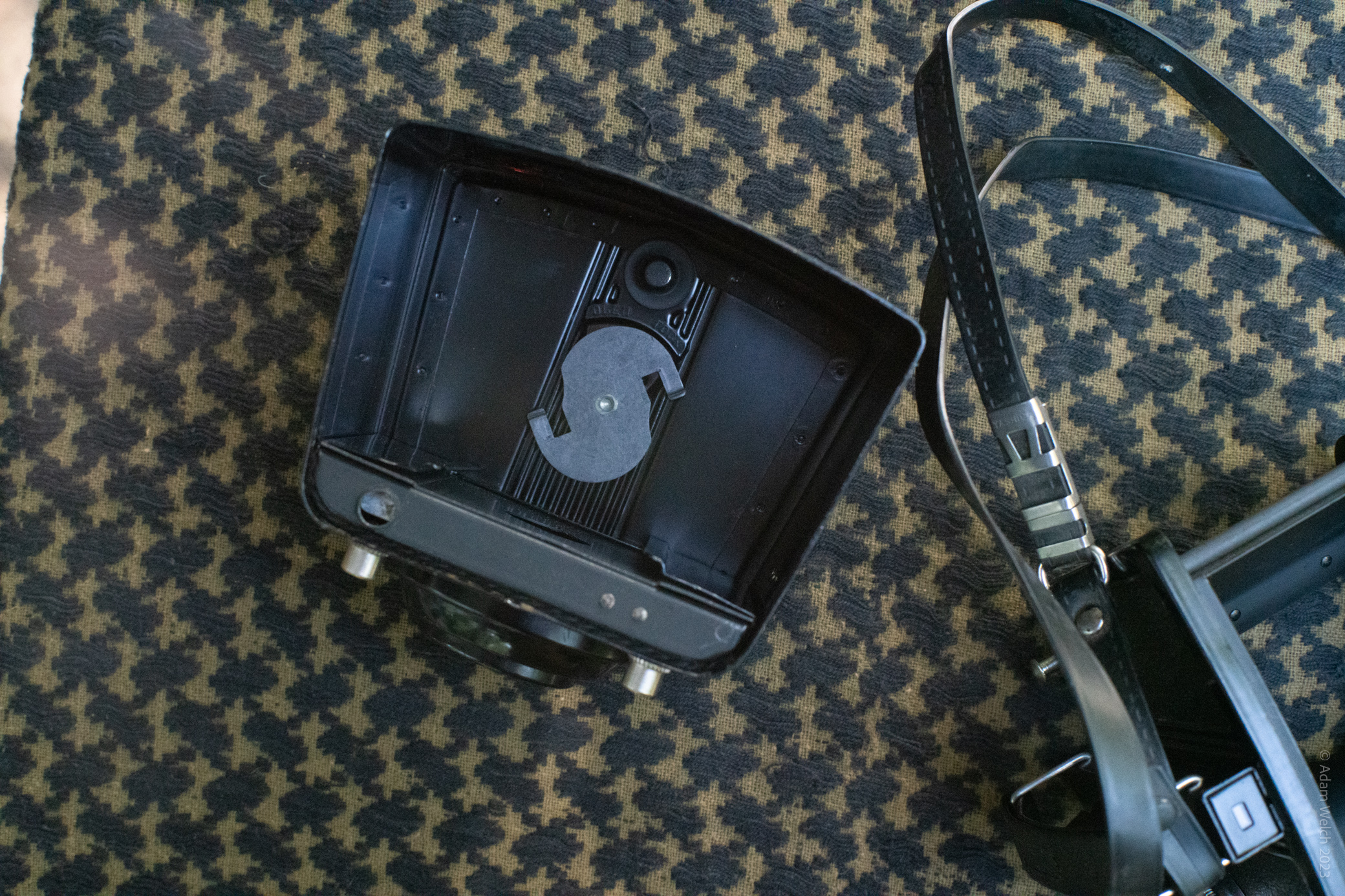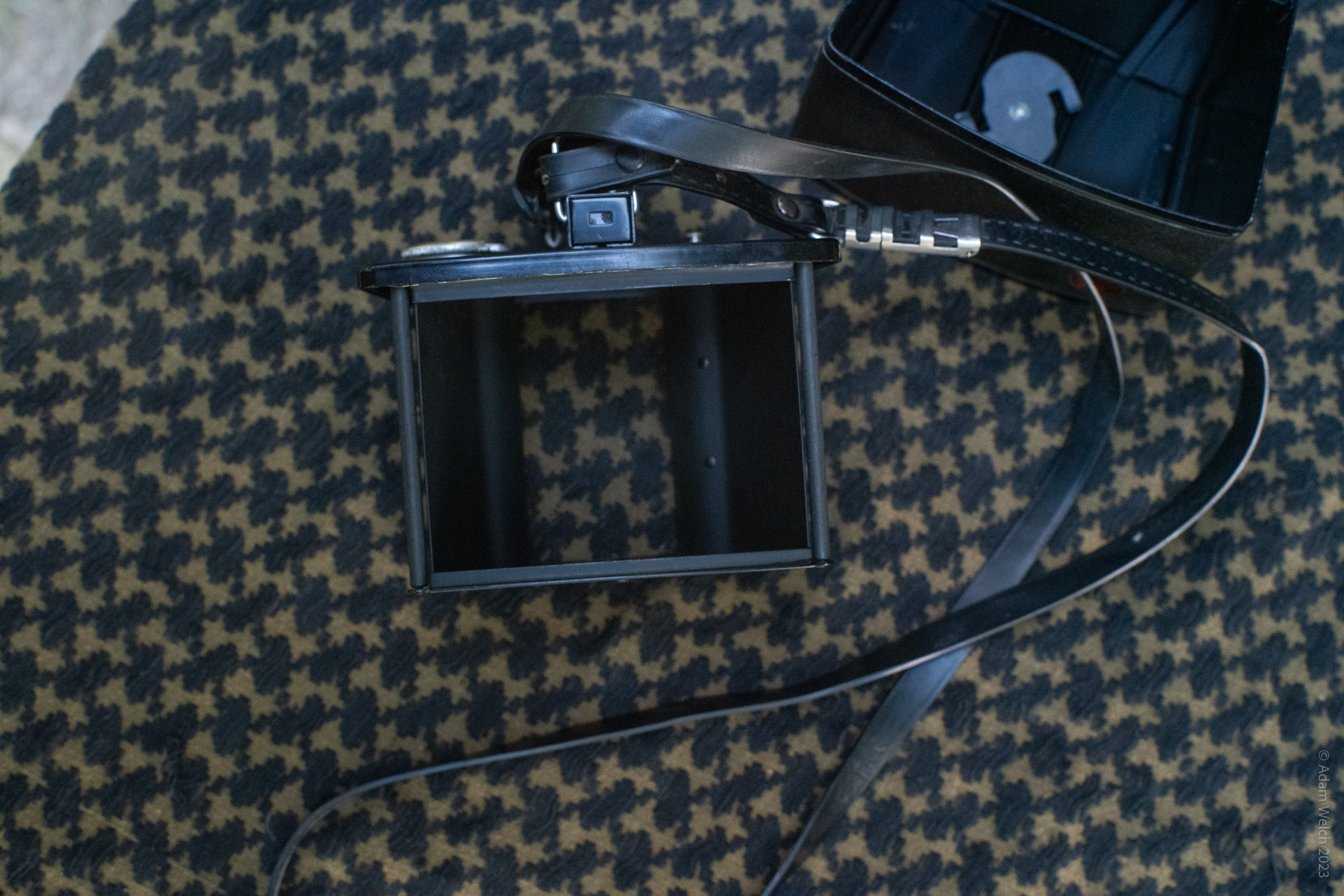 Super clean body, includes Yashica neck strap, two original 620 metal film spools (for spooling 120 film) and original box/manual. Only real signs of use is light pant wearing on the bottom of the camera from riding on the shelf in my vehicle. It's honestly not visible unless you view the camera from the bottom.