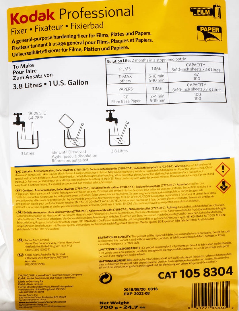 Waiting on the TF-4 from PF, but I got a package of Kodak Professional Fixer. "A general purpose hardening fixer for films, papers and plates." Who knows where it came from, I would not have bought it new, but in my experience the "hardening" part of kodak fixer came in a separate little envelope. This has no envelope attached, tho there appears to be a little spot near the bottom where the "hardening" packet may have been attached. May I assume this is NOT a hardening fixer, or did Kodak make fixer with the hardener already incorporated?