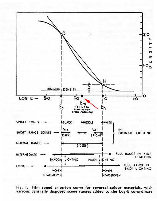 But you don't care where speed point is with slides, you only care where Hg is, which is the mid-tone exposure the light meter will create on your slide if you follow it "blindly". And you care what "grey point" that corresponds to, which is a tone that will be recognised as a 18% reflectance grey or, if you prefer, center of zone V. (that assume standard development, and normal conditions of vision).