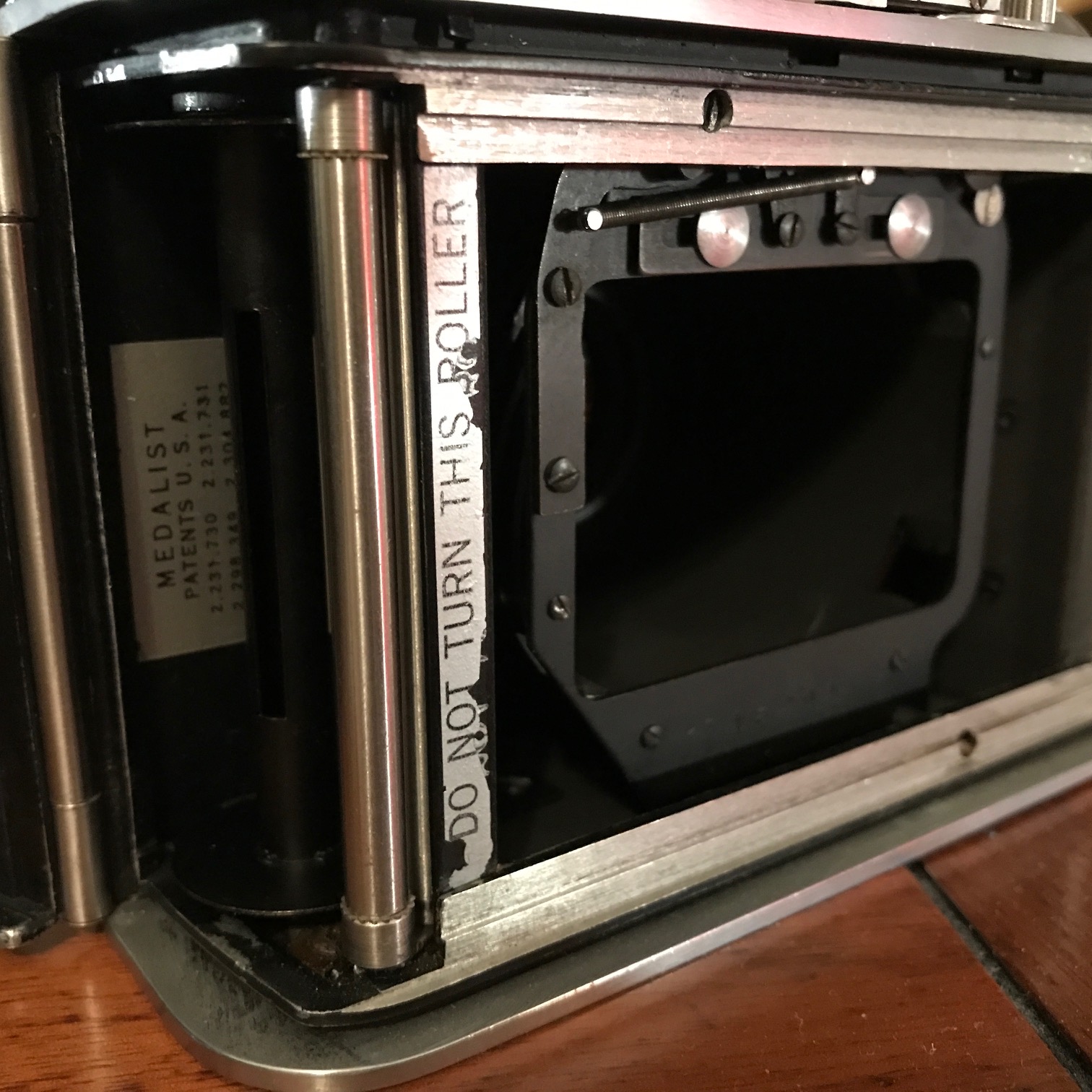 I got a couple rolls of Kentmere 200 and wanted to test one of them using my (up to this point highly reliable) Kodak Medalist. Film was transferred onto one 620 metal spool and then back onto another in a method that I have used many times with Kodak Tri-X, Gold 200 and Ilford FP4+ and Pan F without issue.