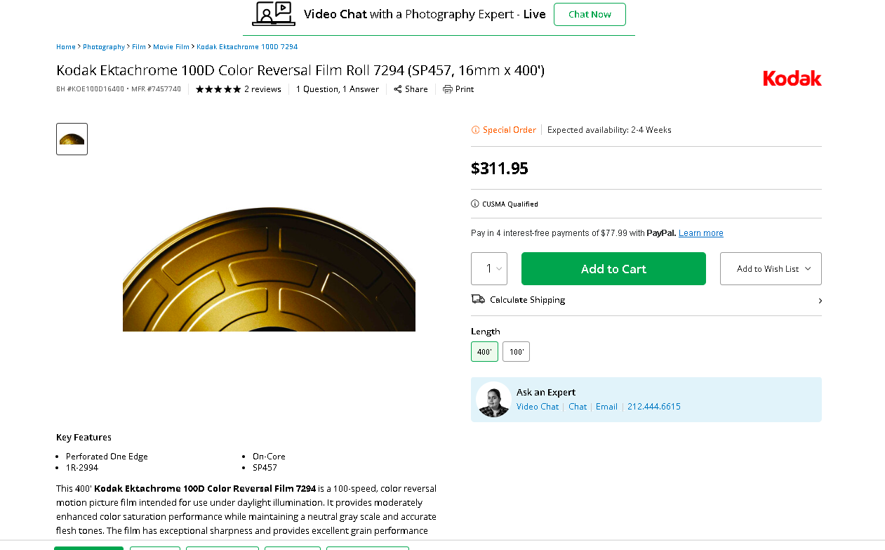 Kodak no longer selling E100D directly to customers?
