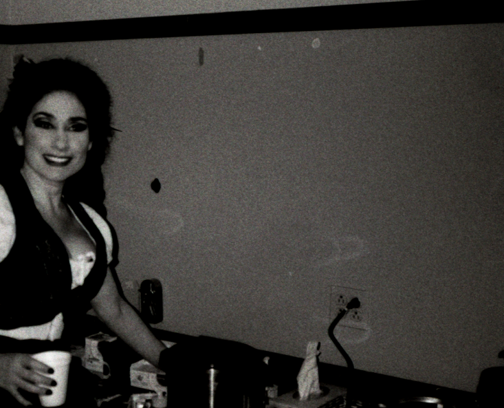 Eh, it's just a backstage snapshot from a show I was in. And I could probably still get a decent print from it. Anyway, I've considered hanging the film different ways. I've also considered letting it drip/dry partially on the reel (on its side), and then hanging it as usual.A shame to spoil such a nice smile like that. You know, you could devise a method to tether the bottom of the films so they hang off-vertical enough to allow the fluid to quickly go to the edge of the film (like sheet film hung by a corner), then runs down the edge and off. Sounds like a kludge but I think not too difficult, and if it works …