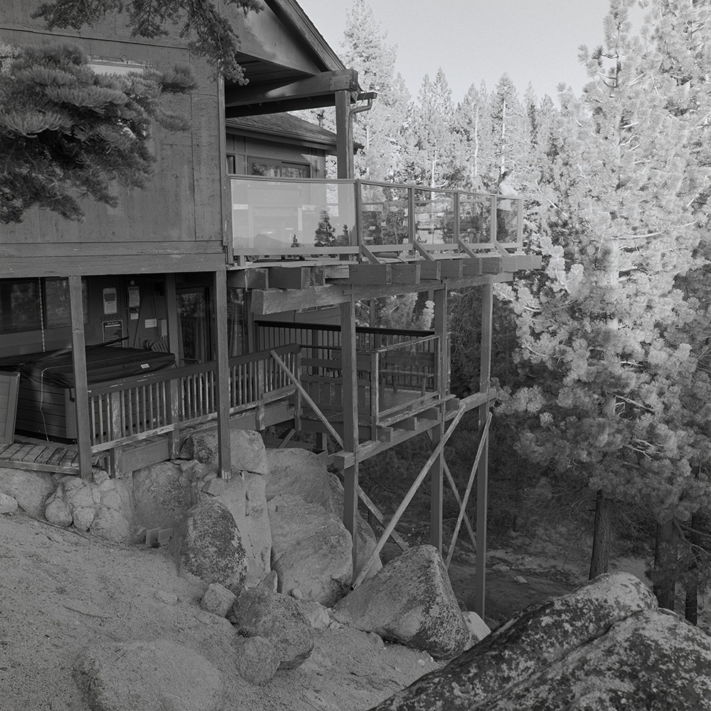 Here's a flat (linear) scan of an extremely high contrast scene. The house is in a deep mountain shadow, and the hot tub area is burred even further, meanwhile the trees are hit by the direct sunlight which is even harsher at Tahoe elevation. There's no clipping. There's texture in all shadowed areas and the highlights are not blocked.