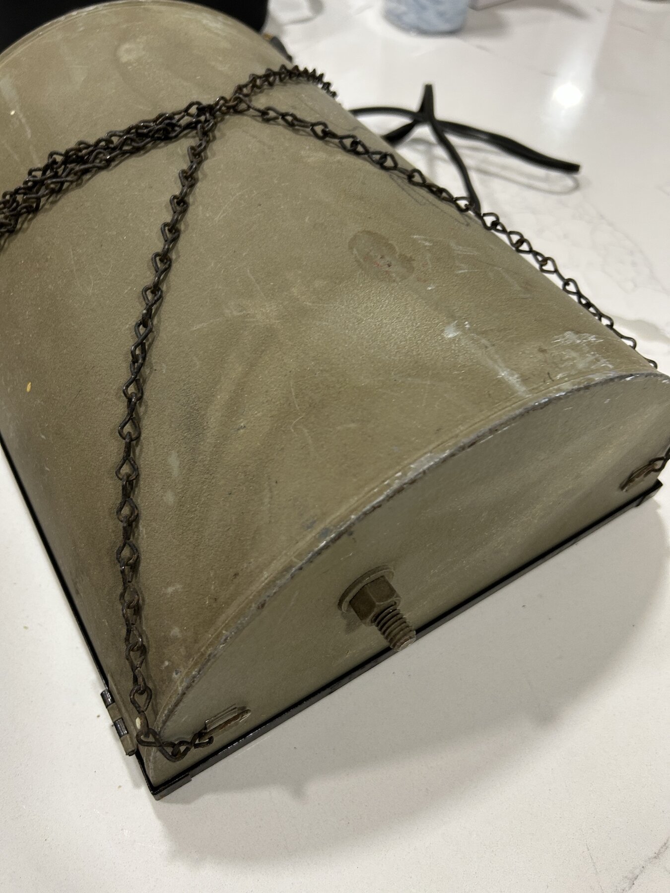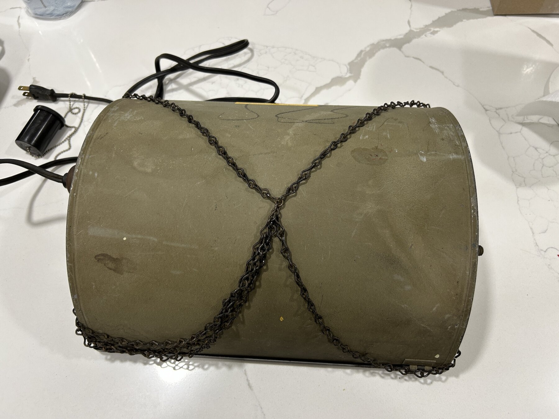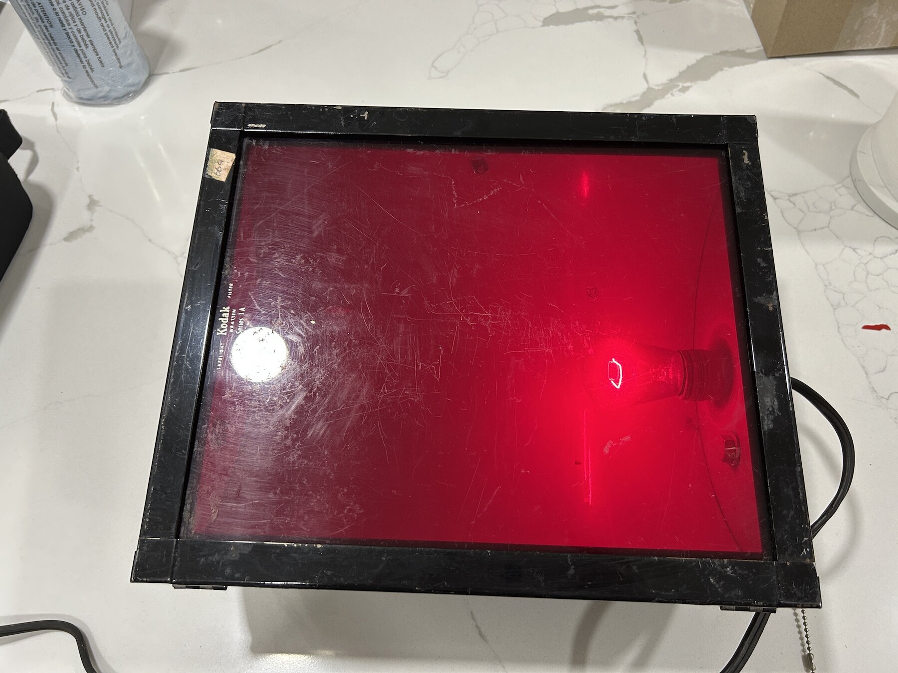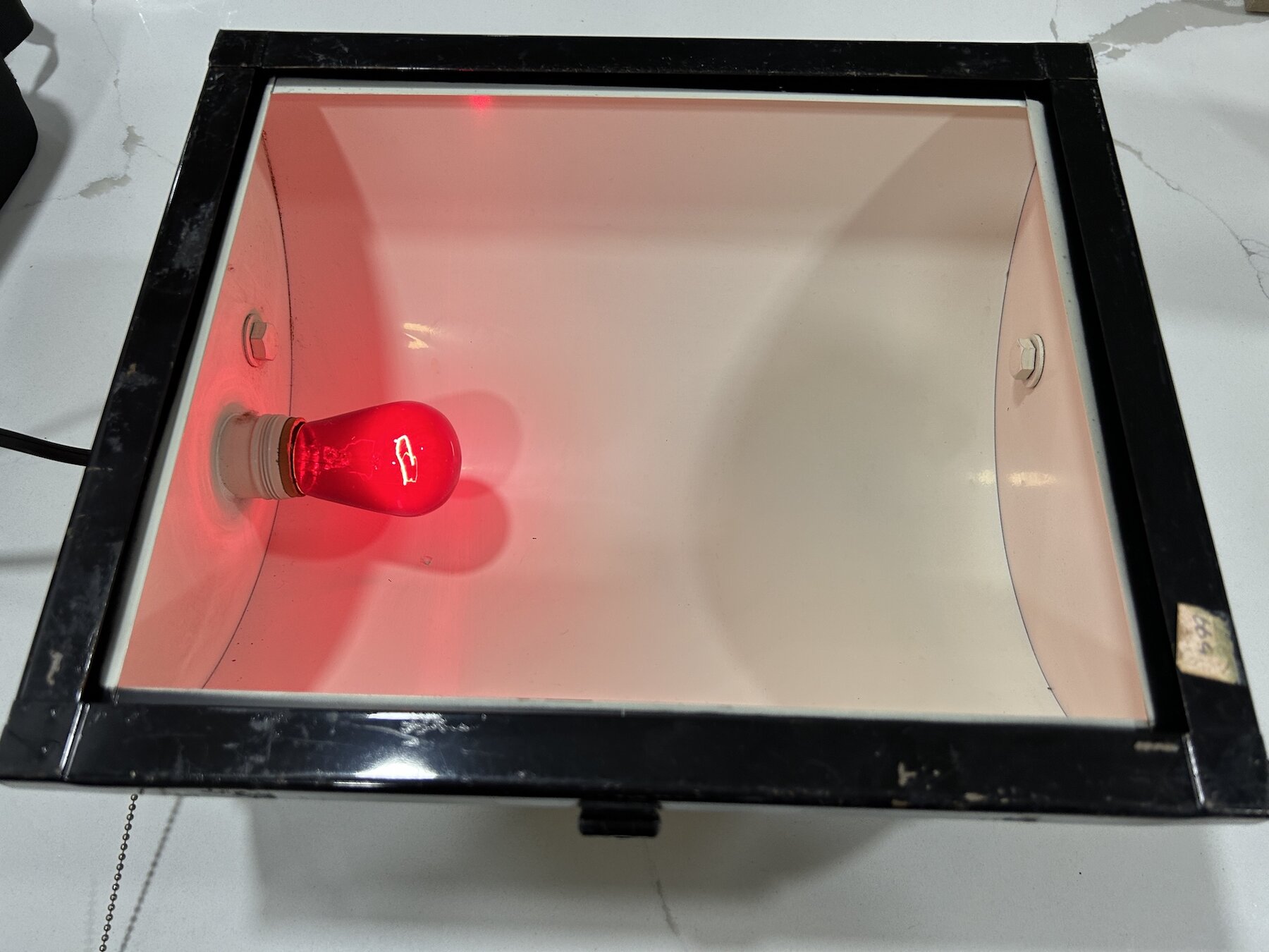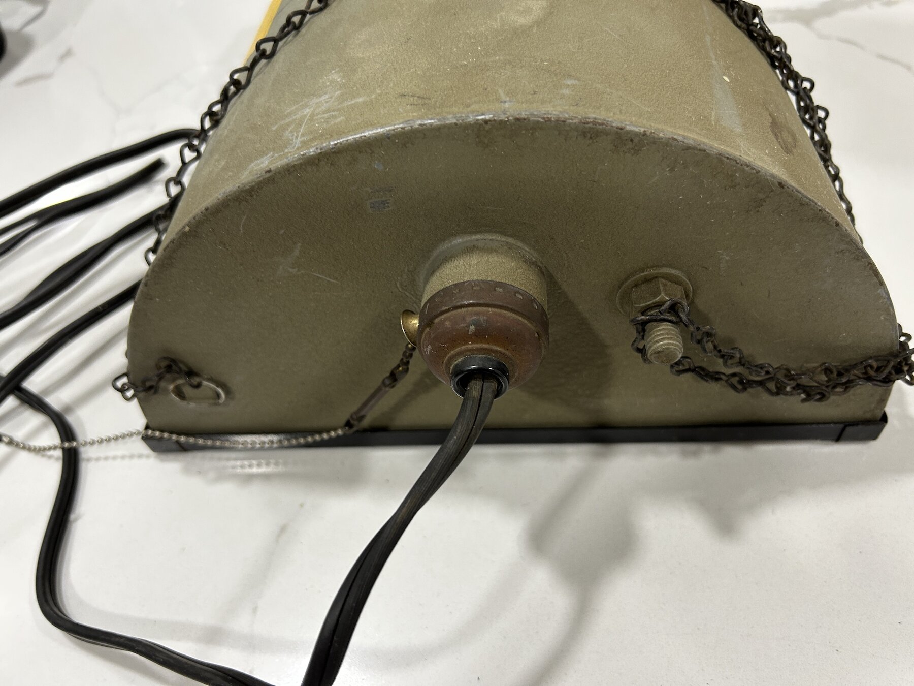 I am selling a used Kodak Utility Safelight Model C. Included is a huge Kodak Wratten 1A filter that fits on to it. This is a very large safelight designed to illuminate larger darkrooms, and is typically deployed from the ceiling using a hanging chain (included). This safelight has seen a lot of use over the years, but still works great. Sold as shown.