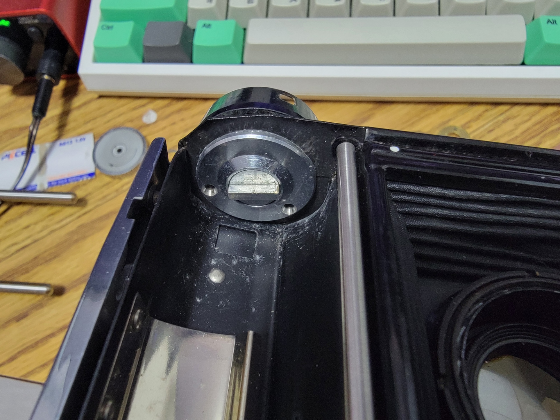 So earlier attempts of operating the advance knob, I stupidly forced it to turn. While it did advance a few more times, giving me hope. It also deformed the hole (first pic), which also deformed the piece where the screw goes (pic 2).