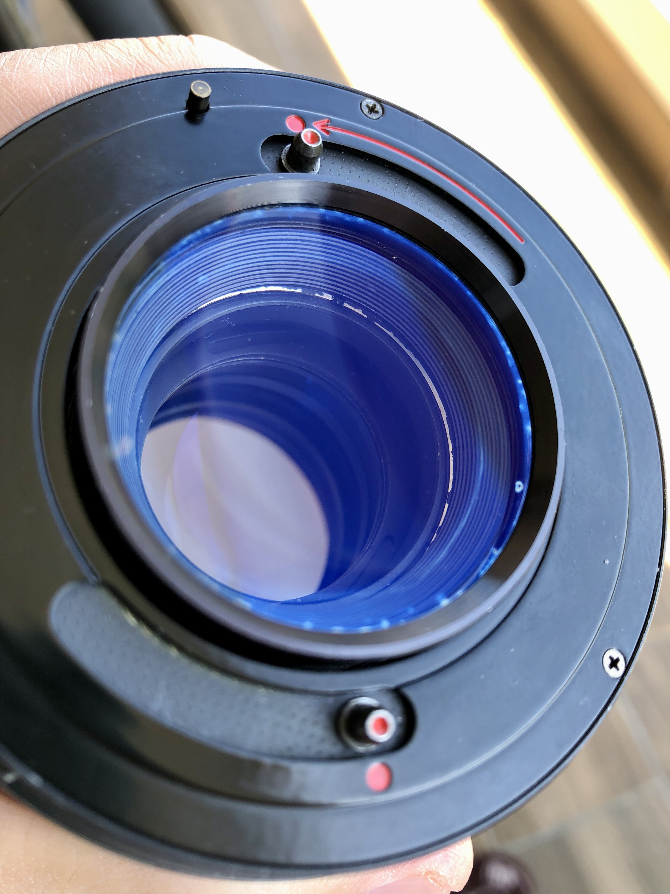 The 85m lens has a mark on the rear side, I don't think it will affect the image but worth to mention, otherwise it's a clean lens, no other defects.