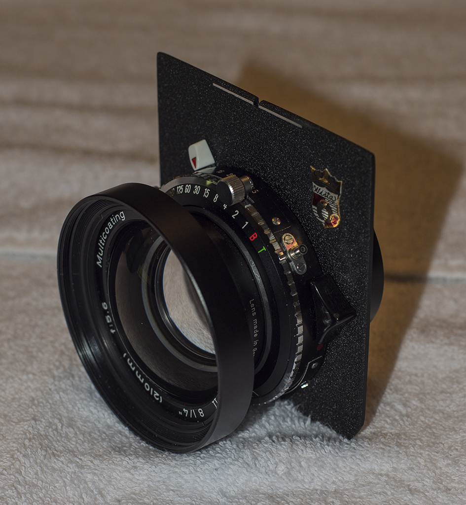 Calumet Caltar-S II f5.6 210mm in Copal 1 w/front and rear caps. Good glass, shutter sounds 'ear' accurate on all settings. Mounted on standard Linhof/Wista/Shenhao board. $250
