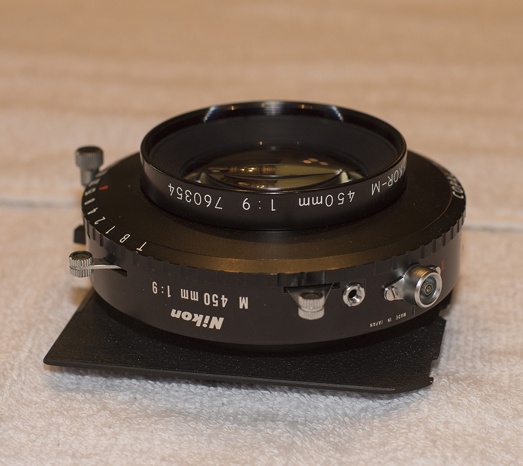 Nikkor-M f9 450mm in Copal 3, no caps. Mounted on standard Linhof/Wista/Shenhao board. $850