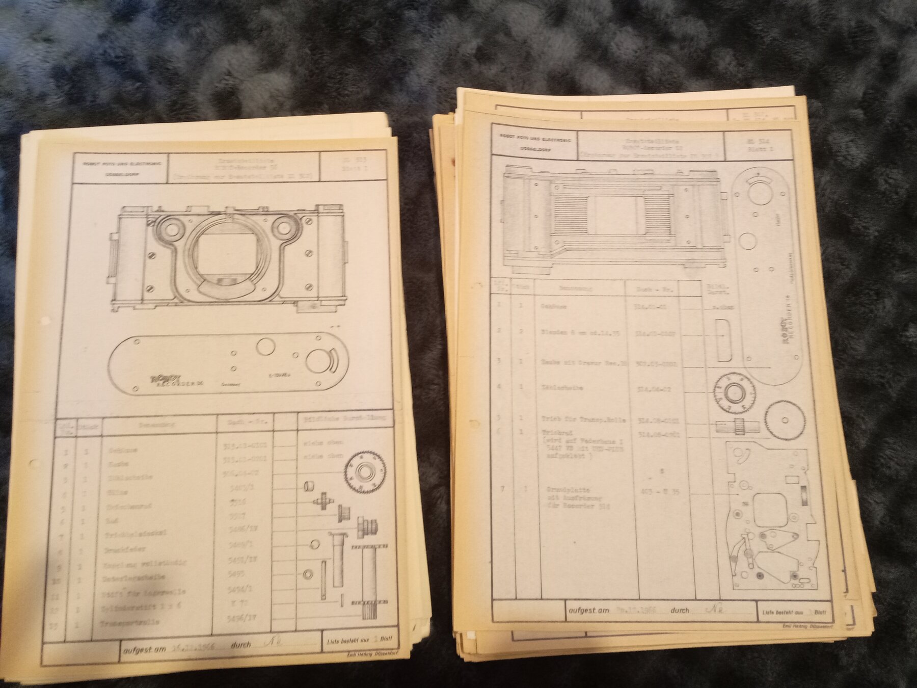 Original Robot Foto (Düsseldorf) service sheets from a 1960s workshop archive — covering Star, Royal & Recorder models.