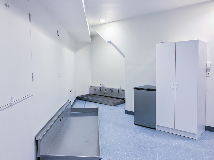 The light is much better directed, allowing an easier work environment (the range of light in working areas decreased from 5 stops to 3 stops). The installation also looks aesthetically better. Our hope, is that the lower temp and specific red output of the LEDS will allow the ruby to last much longer allowing us to not have to replace it so often. Also the amount of ruby needed for this housing is a fraction of what was needed for the previous lighting boxes.