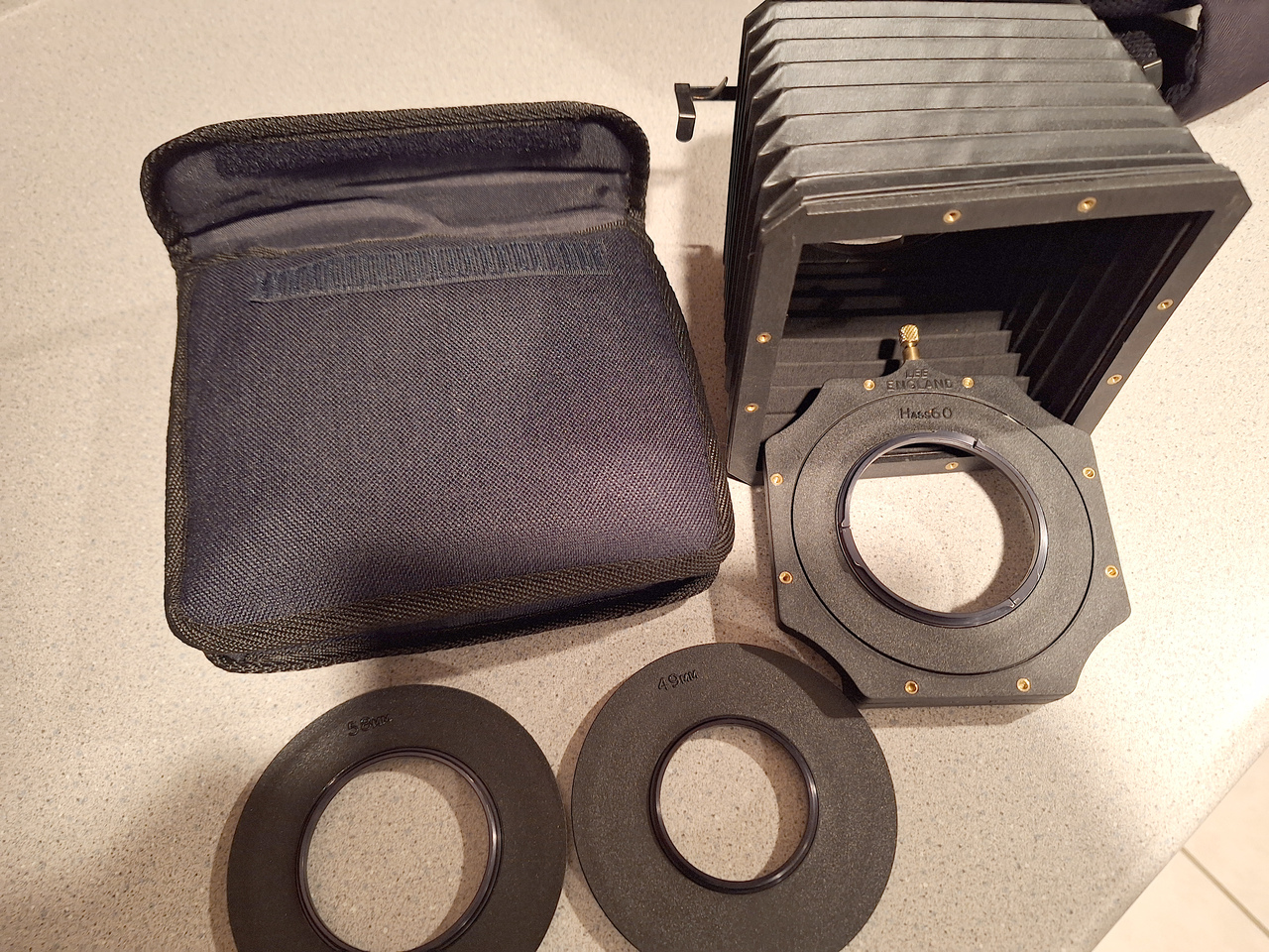 - Adapter rings for Hasselblad Bay 60, 58mm, and 49mm