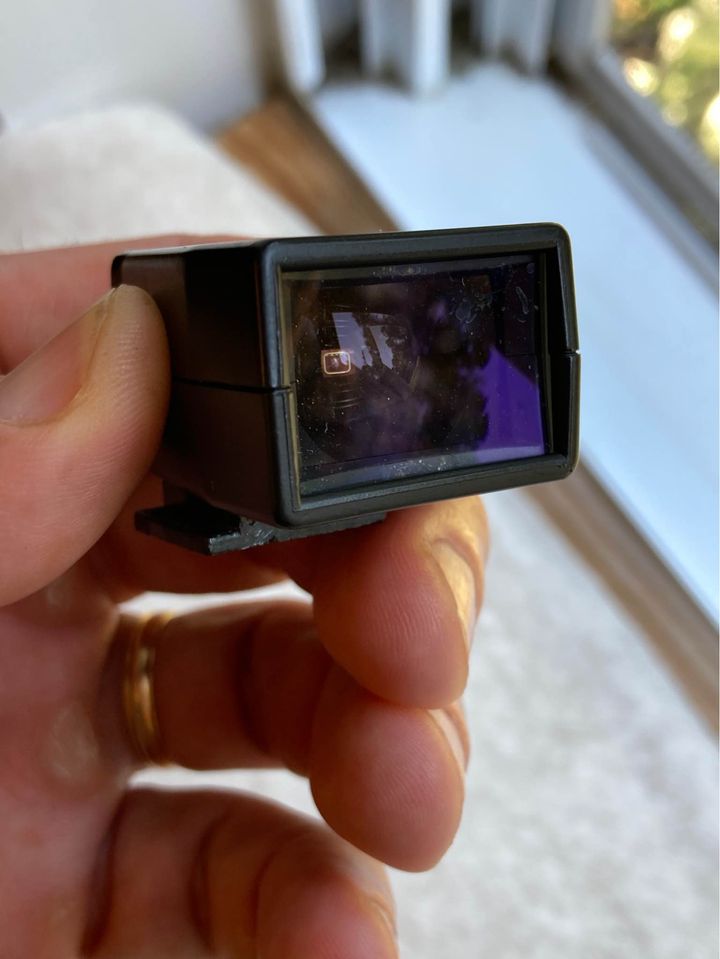 Leica 21mm Briteline Viewfinder with pouch. Moderate signs of use. The view is clear and the lines are in great shape. There is a small smudge ( at upper right corner about 1 o'clock) on the interior of the glass but it has no effect using the viewfinder. Priced accordingly but please note this works perfectly and the "smudge" has zero impact other than cosmetics. Priced accordingly. $ 145 plus shipping. I ship worldwide to PayPal addresses