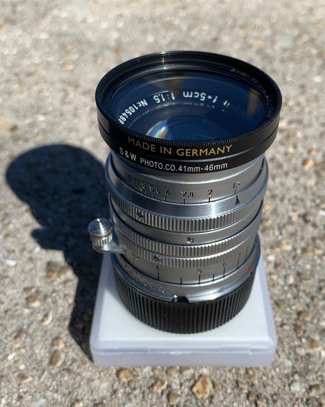 Selling one of my favorite classics from the mid 50s because I do not shoot it and want the money towards other film stuff. It took me quite a while to find such a nice one of these and this lens is a real survivor. I sent it off to Don for a full overhaul about two months ago. Receipt email for the lens service from DAG will be included with the sale. It is very clean and all functions are smooth and as accurate as it gets. The focus is dead on with my M7 patch. I took photos of the lens out in harsh sunlight so everyone can see all of its flawed glory before purchasing. I know almost all of these lenses have some scratches or cleaning marks on the soft front element and mine is no exception. However, this one has very minor wear to the front element and the rest of the lens including the rear element are clean and clear. I rated it an 8+ but considering its age and what it is Ill just say good luck finding such a nice one. It makes very nice photos and will serve someone well for many years to come. I am including a 41-46mm step up ring, clean B+W UV filter, LTM-M mount adapter and rear cap in the sale.