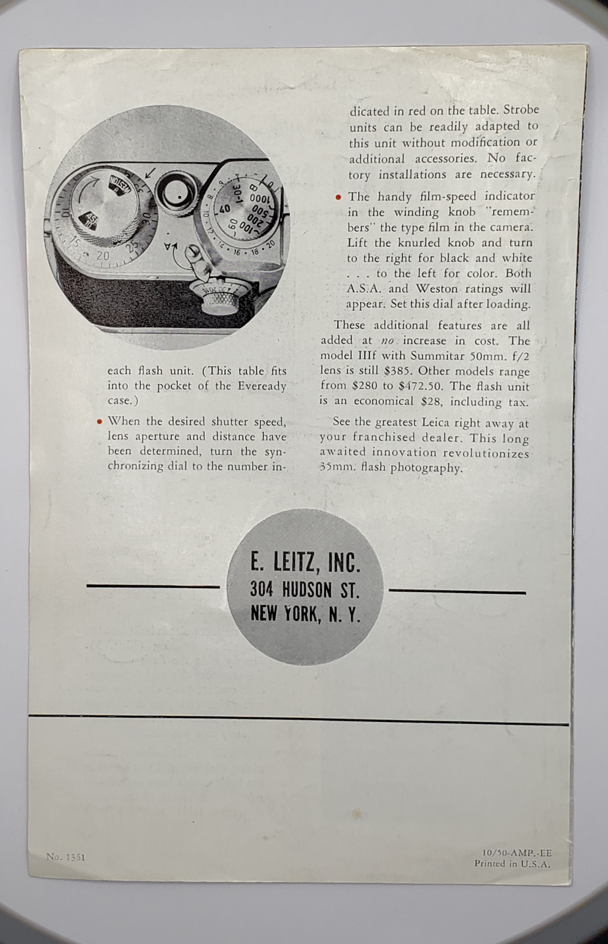 A Leica IIIf Sales Brochure, dated 10/1950, E. Leitz, Inc. New York.