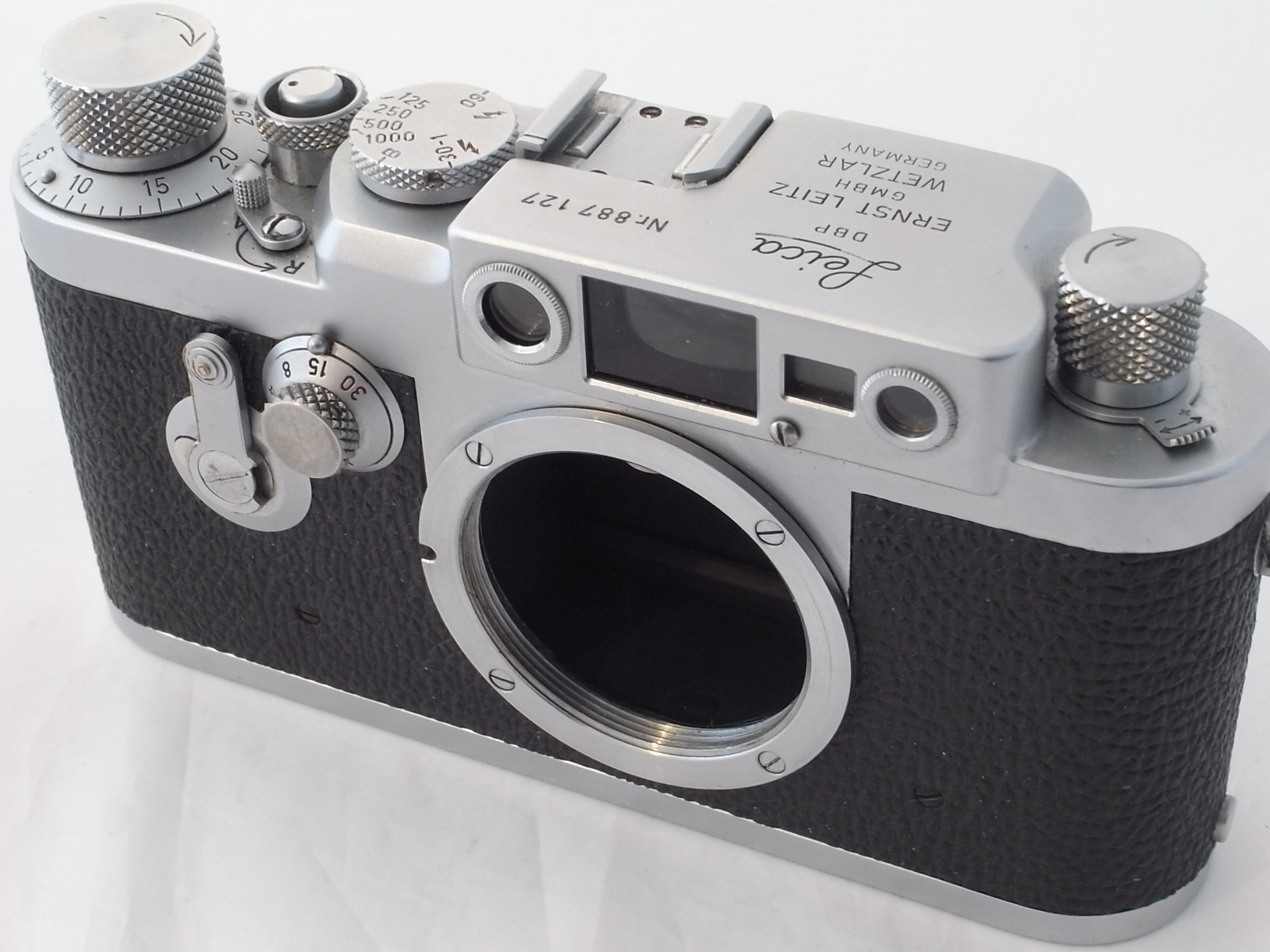 Selling this Leica IIIg which actually has been working at speeds higher than 1/15th but occasionally the shutter slows down even at those speeds. So, it needs a CLA. It has a couple other issues. The rear film indicator plate is gone. There are at least one set screw holding the shutter speed dial on that is missing the ears so they might need to be drilled out to get the shutter speed dial off. Some very light haze inside the viewfinder. The curtains both look great so no worries there. Well, the camera looks very nice so when its fixed up should be a nice working camera. I'll ask $300 for this and no returns, a friend payment please. Thanks, Bob in Michigan. SOLD