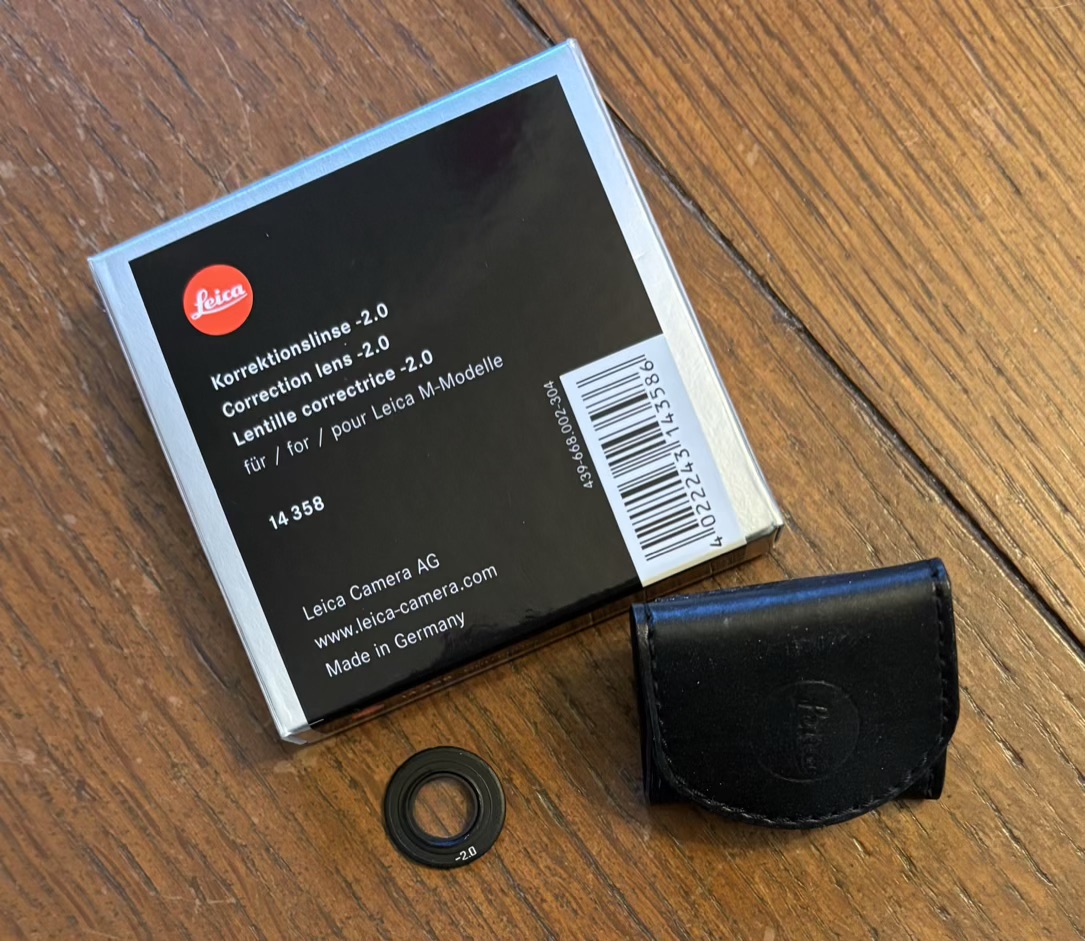 This listing is for a Leica -2.0 diopter eyepiece correction lens for M-series film cameras from the M2 all the way to the M7 and MP (maybe not the M5?). Not sure if it works or even needed with digital bodies. It’s in mint condition and comes with original box and a neat little Leica leather case that was sold separately. $95 plus shipping at cost anywhere in the world. Thanks for your interest.