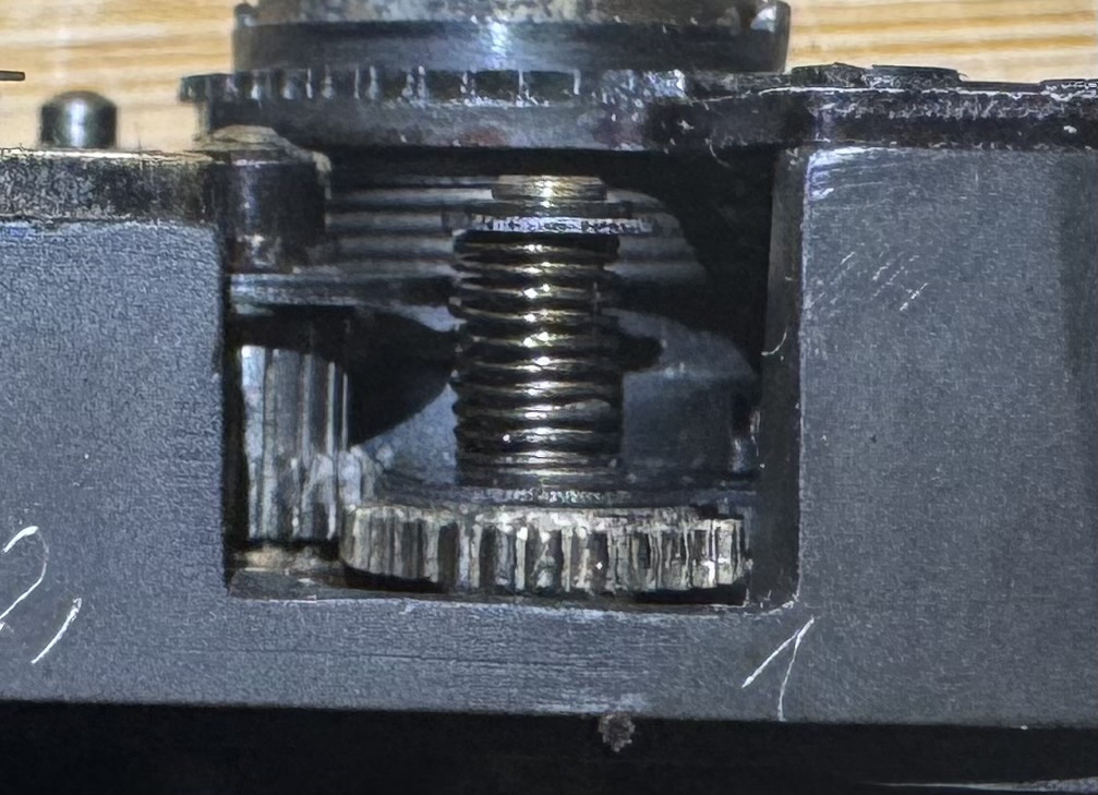 Because it's misaligned, some bit of chewed-off metal may have worked its way along the gears to some point inside. If you want parts, you can email DAG - he has everything. But because there is the likelihood of crud deep inside the advance/shutter-cock mechanism, the camera should be probably be completely dismantled.