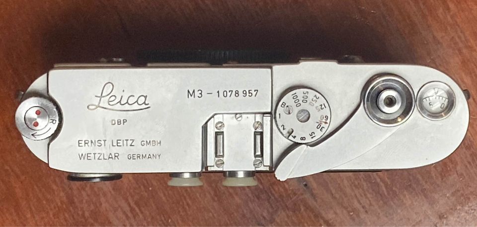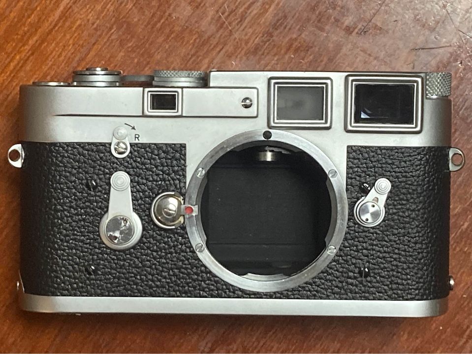 A very nice Leica M3 with serial # 1078957 Single Stroke. M3s with over 1 million serial are coveted as the M3 reached the pinnacle of quality at this time. This model was just CLA'd by Youxin Ye at a cost of $ 290 which included a full CLA and a new covering. Camera is operating perfectly and will for many years to come. Shutter, rangefinder, viewfinder lines, timer, curtain are all working perfectly - good clean model. Body is in good shape with no dings or dents and showing just light wear. Camera was from a collector/user of Leica equipment. It is missing the tiny red inner circular film reminder plate on the rear, all else very nice. $ 1,399 plus shipping. I ship worldwide to PayPal addresses