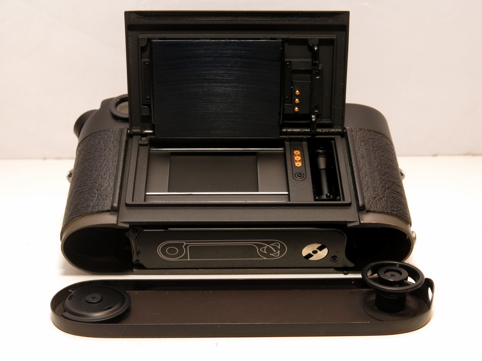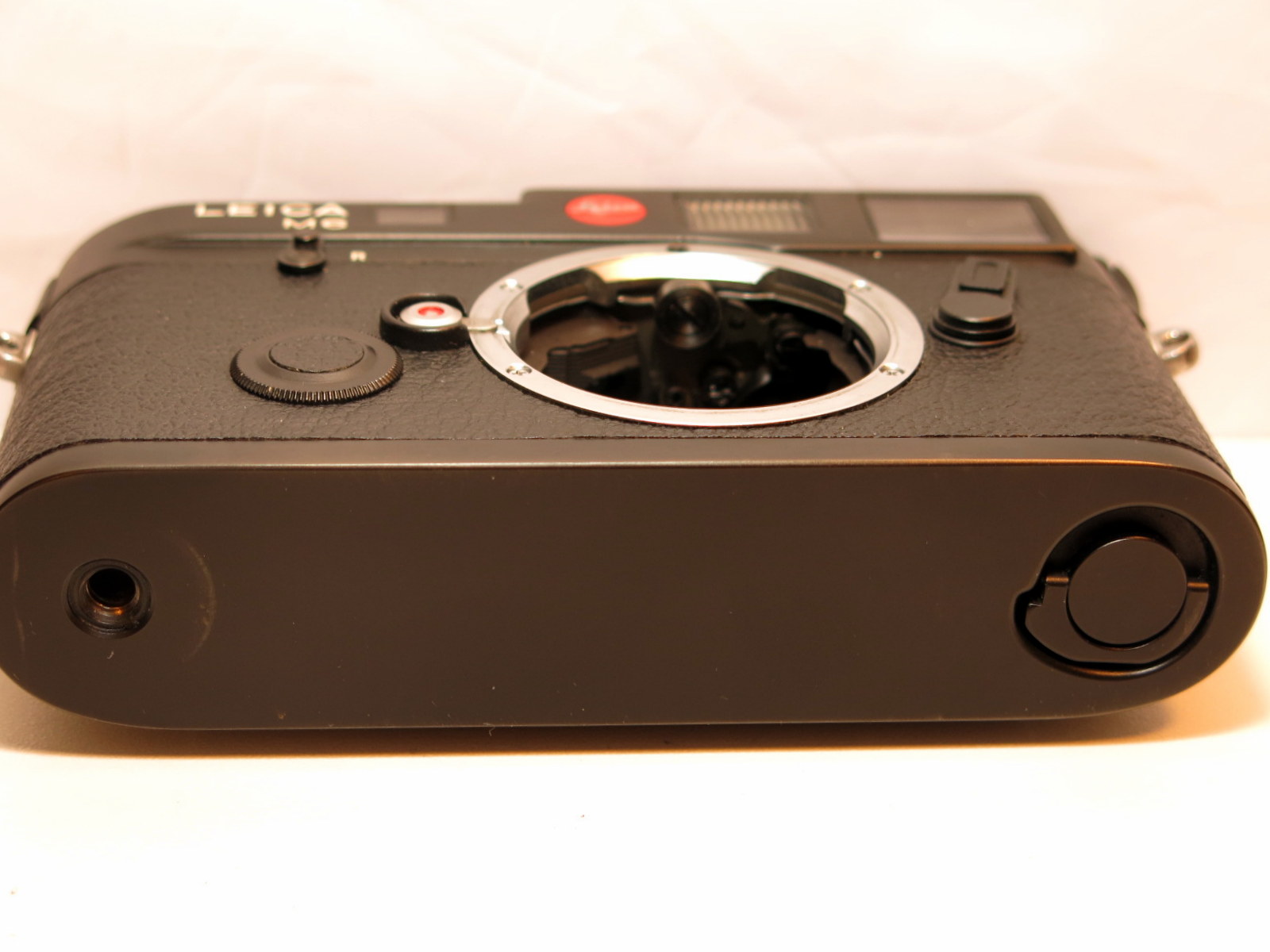 Original owner, serial #19052XX. Used very respectfully and in excellent condition. Fully CLA'd by Sherry Krauter around 4 years ago. (For what it's worth, when I spoke with Sherry after sending the camera to her, she remarked that the serial number indicated it was from "one of the better production runs". Apparently, subsequent runs were not as meticulous. So there it is.) Mechanically flawless, clear and bright viewfinder, bright meter LED's, accurate shutter speeds. There are three minor cosmetic issues and are visible in the photos: there is a bit of flaking black paint on the rim of the viewfinder eyepiece; there is a wear mark on the baseplate around the tripod mount to which the grip attaches; there is wear on the strap lugs.