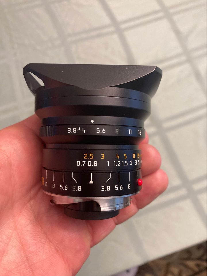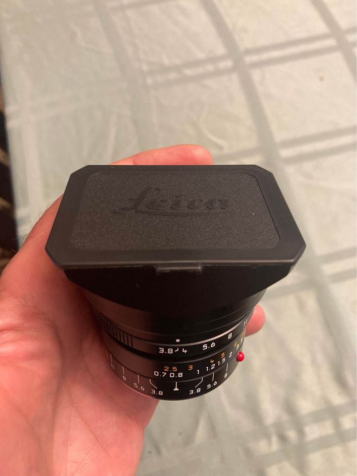 Beautiful Leica Super Elmar 18/3.8 Aspherical Lens with dedicated hood. Lens is in mint- condition. One owner who babied his Leica gear. Barely any signs of use. Glass is perfect. No haze, no fungus, no cleaning marks, no oil. Perfect working lens. $ 1,899 plus shipping. I ship worldwide to PayPal addresses.