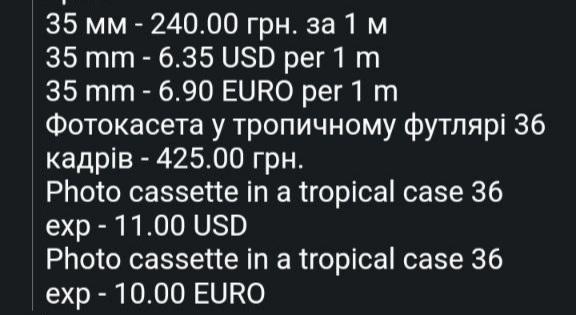 I'm already interested in this. What volumes are we talking about? Here you need to count. Delivery from the USA to Ukraine, unfortunately, delivery from Ukraine to the USA is much more expensive. Two days ago I sent two FEDs weighing 2 kg to the USA. It cost me $30 UPS Express. A 30.5m roll of film will cost the standard $7-12. Unfortunately, in the opposite direction it is three times more expensive. We need to count. In Ukraine, Aerocolor winding 24 frames = 10 dollars is sold. Svema is cheaper)))