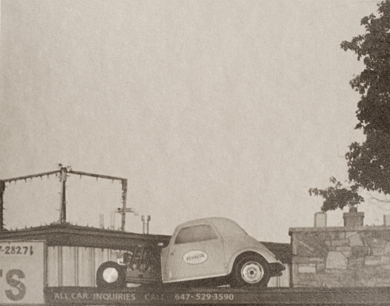 But I was impressed with the sharpness of the negative and thought the development and exposure made an easy to print negative. So I sat on it for a while and tried various crops with L-shaped cards. I thought perhaps a solarisation type treatment might be interesting. I was unable to make that happen but I did in actuality end up flashing the print which darkened the sky and help in the separation of tones Vis a Vis the rooftop car. The rooftop car presented itself to me as a subject and I decided to try some older Ilford Art paper for its texture, tone, and feel. The out of date paper had fogged and also separated the high values. I went from a 20 sec exposure for the work print to a 4 minute exposure for this. The end result demonstrates the nature of photography as an isolation of elements; removing and removing until the subject reveals itself. This is my end result which I mailed to Don because I thought he should be able to experience the physical nature of the print (he has done such excellent work)! Click on it to see.