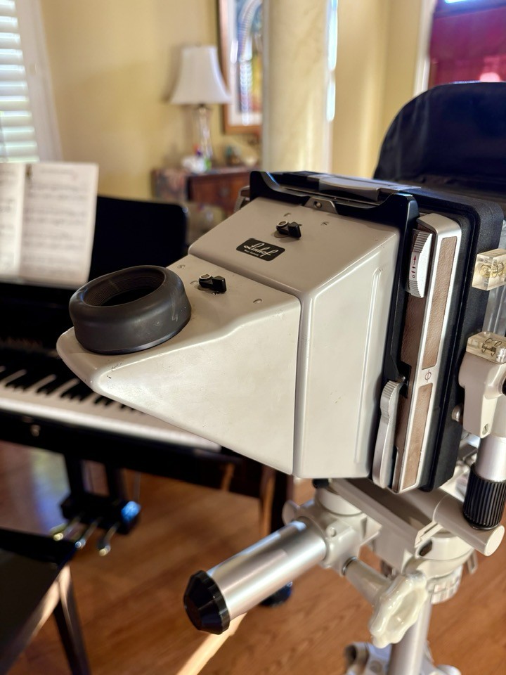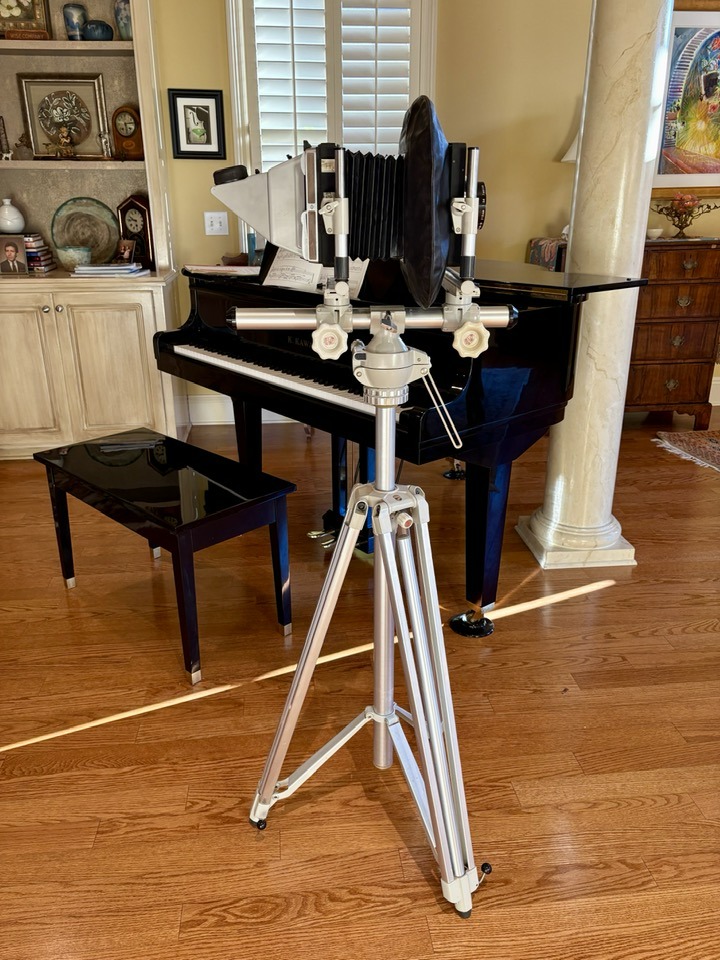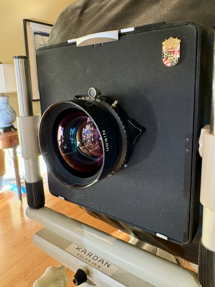 Includes: Camera, 45 degree reflex viewfinder, Linhof HD tripod with pan/tilt head, Nikon 210mm f5.6 lens and a few extras.