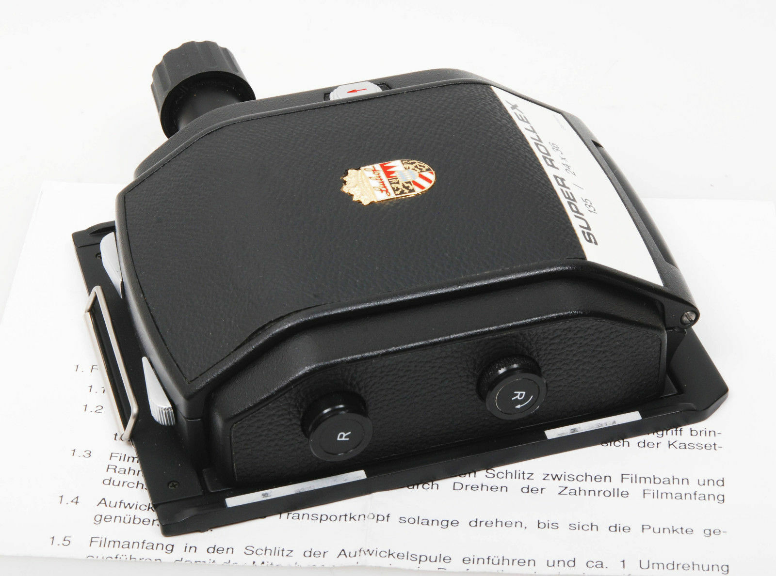 Linhof Super Rollex 135 24x36mm (35mm small format) film back for large format 5x4 cameras. This is quite a rare item and could be useful for certain applications, lens testing and so on.